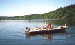Am Sonntag war 7.00 Uhr Wecken und anschließend wieder Frühsport. Nach dem Frühstück stand Keramikgestalten auf dem Programm. Egal ob klein oder groß (oder ganz groß), alle grundierten und bemalten schöne Keramikfiguren. Nach dem Mittag stand dann das Volleyball- und Fußballturnier an. Von 3 kleinen Regenschauern unterbrochen, spielten wir fast 3 Stunden, bis das Siegerteam feststand. Danach ging es gleich los zum Tretbootfahren. Und ausgerechnet in der einen Stunde zu Wasser ließ sich sogar die liebe Sonne einmal blicken. In den sieben fröhlich-bunten Tretbooten hatten wir eine Menge Spaß. Zurück in der JH gab es Abendbrot und anschließend Lagerfeuer. Zu diesem Anlaß waren Susi, Frank, Andreas, Jana und Max extra in die JH gekommen. Aber das Holz war so naß, das wir zum Entzünden mind. 1 Stunde brauchten. Schließlich gab es aber doch noch den heiß ersehnten Knüppelkuchen und Gitarrenmusik von Jana. 21.45 Uhr gingen Patrick und Ellen mit den Kindern rein, während die anderen noch am Feuere saßen und Ralfs Geburtstag feierten. Wie immer war vor Mitternacht nicht an Nachtruhe zu denken. Aber immerhin hatten wir die Kinder so geschafft, daß sie ihr Vorhaben "Durchmachen" nicht verwirklichen konnten. :-)