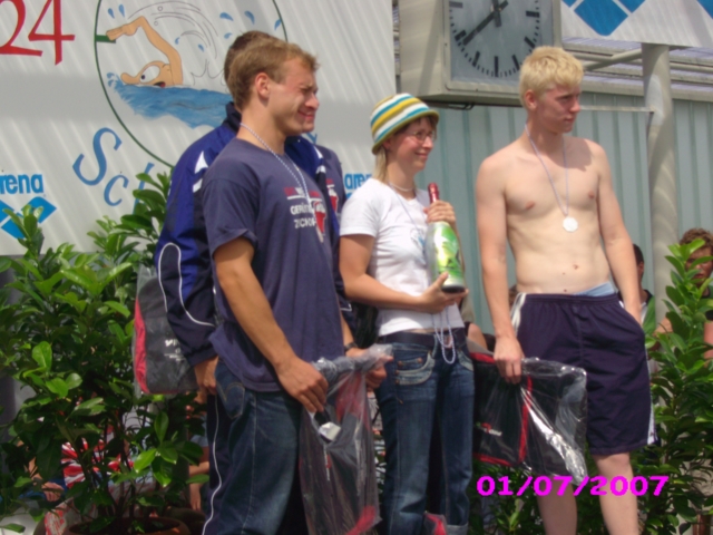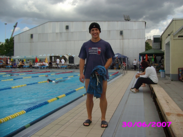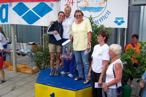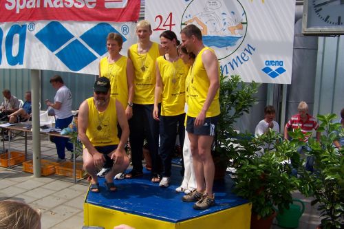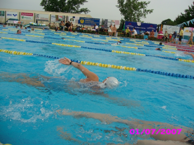 Hier die Bilder vom 10. 24-h Schwimmen vom 30.06. - 01.07.2007 im Sportforum in Chemnitz ! Wir waren mit unserem 6-er Team (natürlich wie immer unter dem Namen des Vereins startend) wieder sehr erfolgreich - 2. Platz bei den mixed Teams ! Ellen machte den 3. Platz in der Einzelstarterwertung. Das Team der rennenden Schildkröten teilte sich mit einer weiteren Mannschaft Platz 3 der gemischten Wertung. Unbedingt erwähnenswert ist der erste Start bei einem solchen Langstreckenschwimmen vom Ehrenmitglied unseres Vereins Prof. Dr. Leonore (Leo) Heiland: sie schaffte aus dem Stehgreif 30 km, belegte damit Platz 2 der Damenwertung und brachte die Führende (Mandy Hell) zwischenzeitlich ganz schön zum schwitzen.