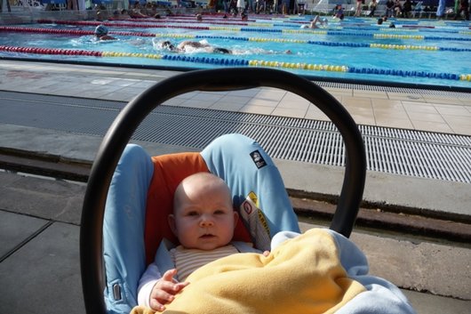 Ab und zu schauten mal ein paar liebe "Gäste" vorbei, um uns anzufeuern und Mut zu machen. Patrick wandelte wie jedes Jahr fast 24 h am Beckenrand und bewachte "seine" Schwimmer.