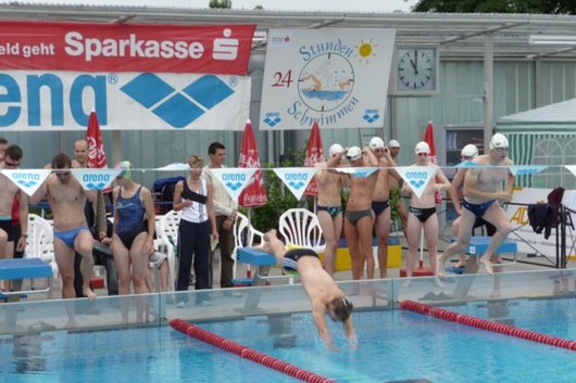 Herzlichen Glückwunsch ! an alle und Danke an diejenigen, die uns unterstützt und motiviert haben. Und Danke an den Veranstalter, der wohl leider wegen der wenigen Teilnehmer beim Schwimmen für Jedermann in diesem Jahr rote Zahlen schreiben muß. Wir würden uns sehr über das 12. 24-h-Schwimmen freuen.