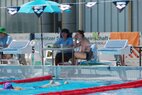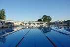 Je später der Nachmittag, um so heißer wurde es. Im Schatten waren 38 Grad längst erreicht. Aber Schatten gab es im und ums Becken leider gar nicht. So wußten wir irgendwann auch nicht mehr, ob unter der Badekappe das Gehirn langsam gekocht war, während der Sonnenbrand trotz mehrmaligem Eincremen auf dem Rücken brannte. Zusätzlich Schulterschmerzen, Krämpfe, Müdigkeit, Muskelschmerzen,… Trotzdem wollte keiner aufgeben.