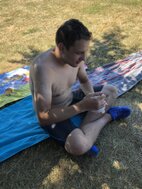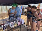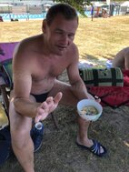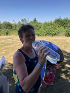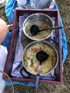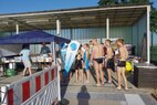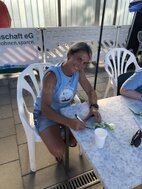 Genau zum Mittagessen 12.00 Uhr kam Katja mit leckeren selbstgekochten Nudelsuppen mit Huhn und mit Rind. Genau der richtige Zeitpunkt für alle Schwimmer, erstmal das Wasser zu verlassen, sich mit bei der Hitze bekömmlichen aber kohlehydratreichen Speisen zu stärken und eine Stunde Pause einzulegen. Das gab noch einmal Kraft für die 2. Hälfte.