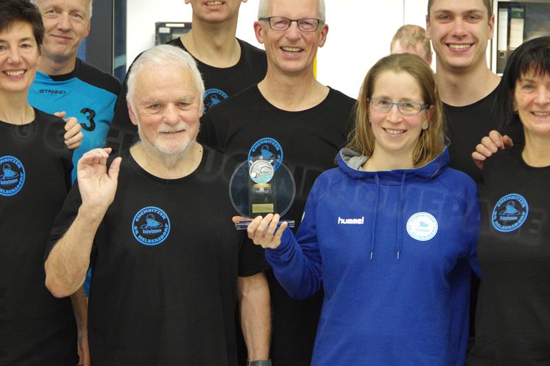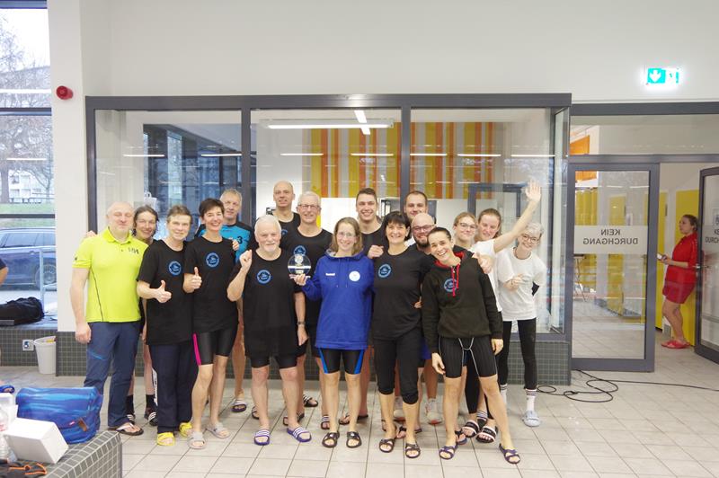 In die Mannschaftswertung flossen jedoch nur die Ergebnisse der 100m Lagen und 25m Strecken ein. Alle kämpften um gute Zeiten, aber auch um Punkte für diese Wertung. 14.15 Uhr, als Lars Ehlert das Endergebnis vorlas, hatten wir tatsächlich den ersten Platz geschafft und konnten den Pokal mit nach Hause nehmen. Es ist die Bestätigung für eine tolle Mannschaftsleistung, zu der ALLE super beigetragen haben! Vielen Dank euch allen, dass ihr mit dabei wart und so gekämpft habt. Ganz am Ende schwammen wir noch 2 4x50m Lagen mixed Staffeln und belegten noch zwei gute dritte Plätze. 15 Uhr war die Veranstaltung beendet. Während des Wettkampfs gab es viele fröhliche Gesichter und ich hoffe, dass ihr Spaß hattet und zufrieden nach Hause gegangen seid.