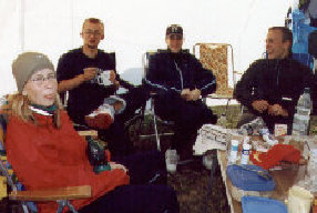 So chaotisch, wie die Planungen in diesem Jahr für unser 6-er Team liefen und so schwierig wie der Weg bis zum Ende der Veranstaltung war, so schön war am Sonntag 11.00 Uhr die Gewissheit, mal wieder sehr erfolgreich alles gegeben zu haben. Wir starteten am Samstag den 03.07.04 11.00 Uhr mit Stephan als Startschwimmer und Andreas als Einzelschwimmer. Zu diesem Zeitpunkt sah das Wetter noch gut aus. Mit uns waren noch weitere 13 mixed Teams ins Wasser gegangen. Bereits nach dem ersten Zwischenstand, wo für uns die meisten Kilometer vermerkt waren, lagen wir super im Rennen. Jedoch gab es schon hier die erste Unterbrechung der Veranstaltung für 8 min wegen Gewitter. Der liebe Petrus meinte es nicht so richtig gut mit allen, denn es herrschte bis weit in die Nacht hinein ein Wechsel von Sonne und starken Regengüssen.