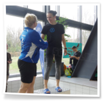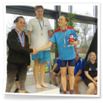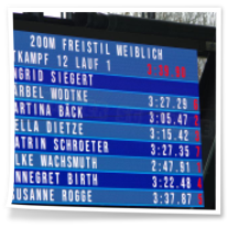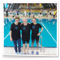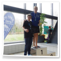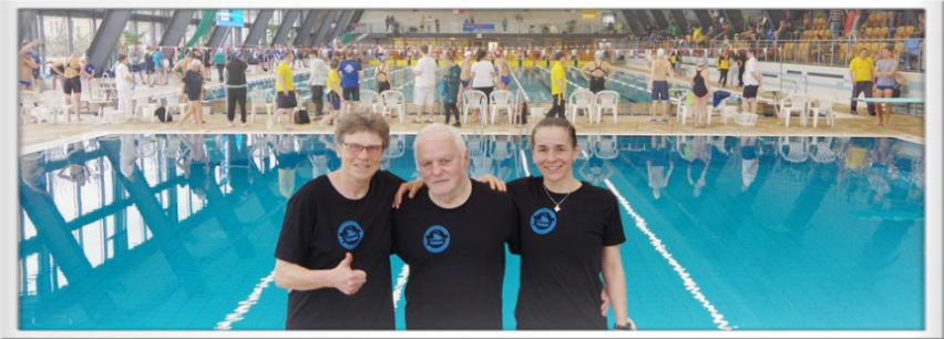 Zum zweiten Abschnitt kam dann noch Heinz dazu. Nach langer Wettkampfpause war das für ihn heute mal ein Test, wo er momentan steht. Er schwamm 50m Brust, 50m Rücken und 50m Kraul und hätte mit seinen Zeiten über allen drei Strecken die Pflichtzeit zu den Deutschen Meisterschaften-Masters geschafft. Glückwunsch! Und natürlich auch zu den beiden Bronzemedaillen! Hella schwamm im zweiten Abschnitt 200m Kraul, 100m Rücken und 50m Kraul und war über alle heute geschwommenen Strecken sehr erfolgreich. Und auch meine 100m Rücken, 50m Delphin und 50m Kraul reichten für je zwei Gold- und Silbermedaillen. Der Wettkampf war für uns 16.00 Uhr zu Ende. Leider dauerte die Siegerehrung am Ende noch sehr lange und so konnten wir uns erst 17..45 Uhr auf den Heimweg machen. Trotzdem war es eine gut organisierte Veranstaltung und wir drei hatten einen richtig schönen Tag.