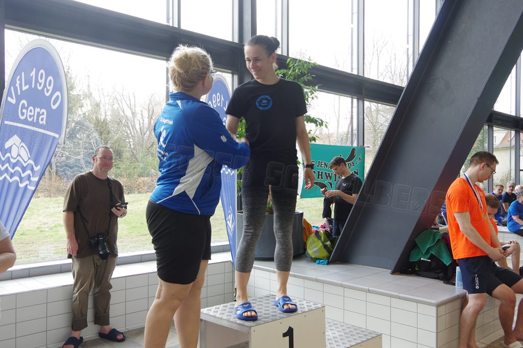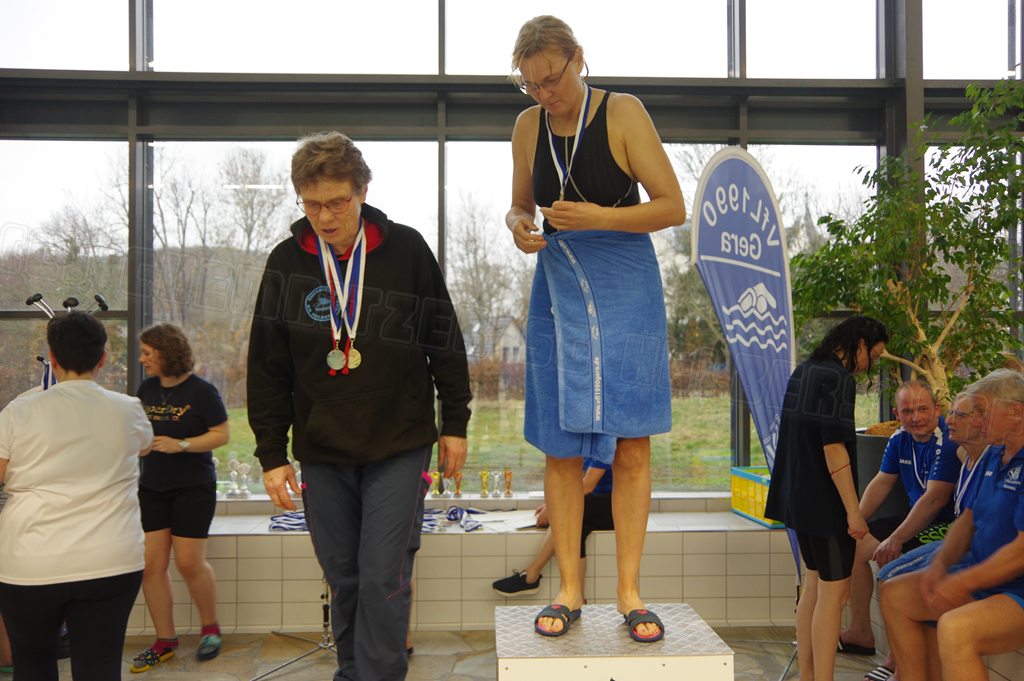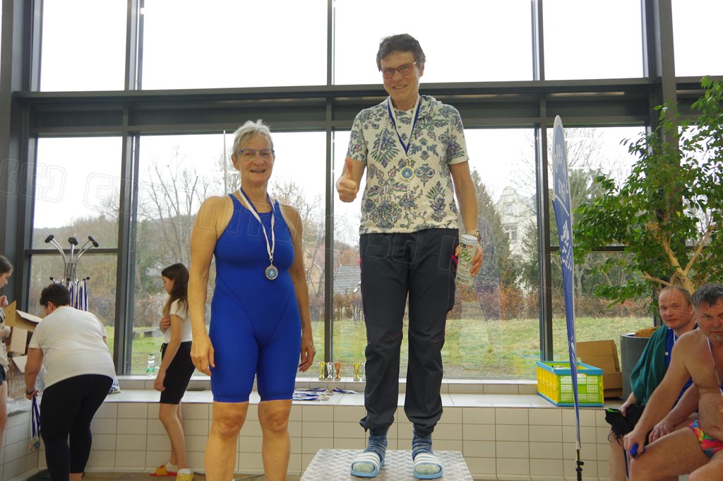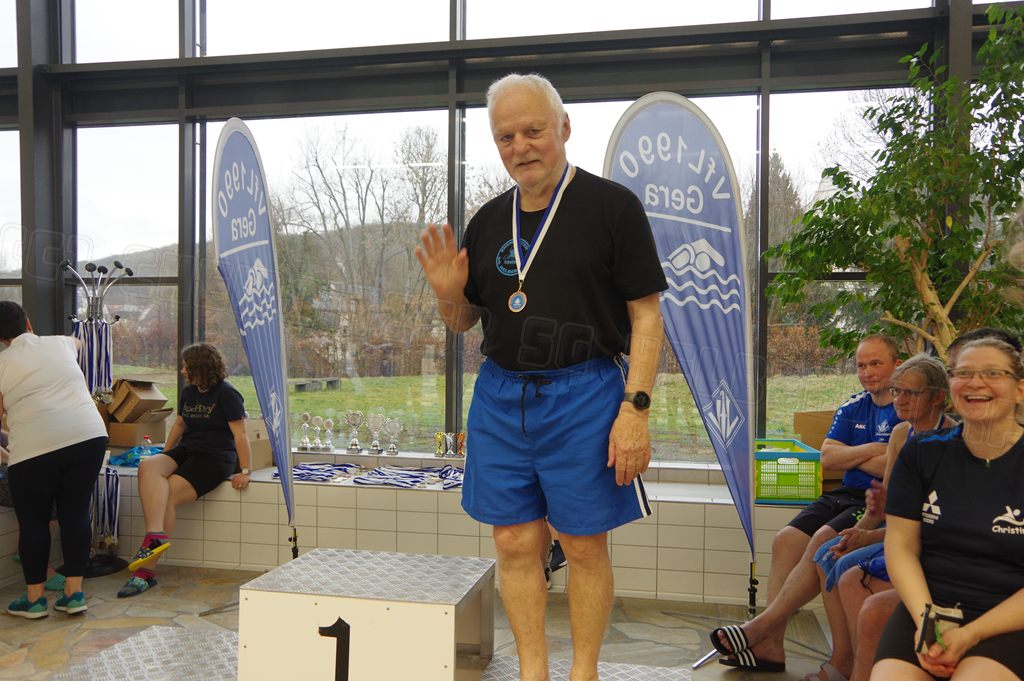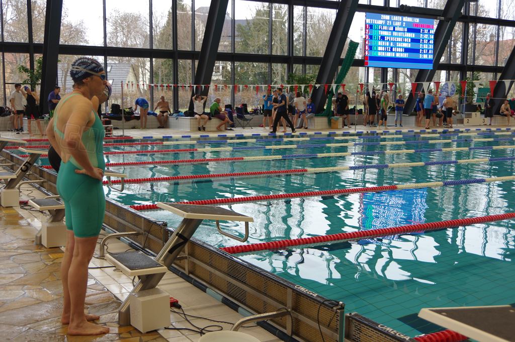Am Samstag, den 14.03.26 nahmen wir nach einigen Jahren Pause mal wieder an den Internationalen Gera-Masters teil. Dazu trafen sich Hella und ich bereits 08.00 Uhr und fuhren bereits zum ersten Abschnitt. Wir erreichten nach 1 Stunde das neu sanierte Hofwiesenbad in Gera, suchten uns ein ruhiges Plätzchen an der Sprunganlage und begannen mit dem Einschwimmen. Das Wasser im Wettkampfbecken war recht kalt. Hella ging im ersten Abschnitt über 400m Kraul an den Start und ich über 100m Brust.