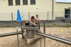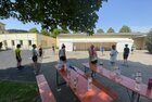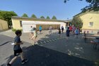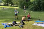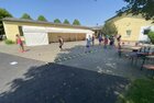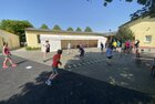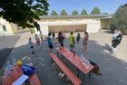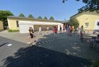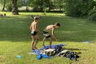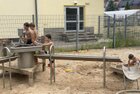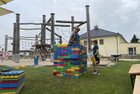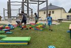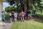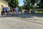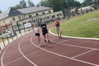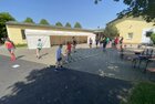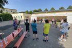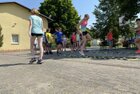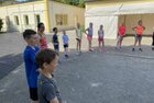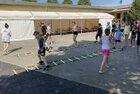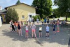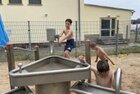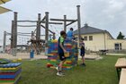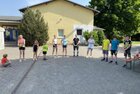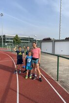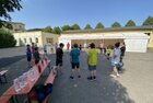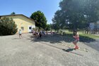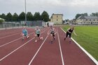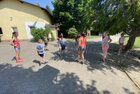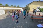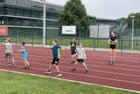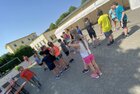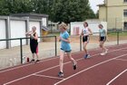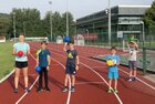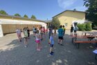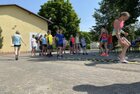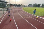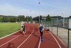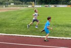 Eigentlich wollten wir bis etwa 07.00 Uhr ausschlafen. Da aber die kleinen Jungs bereits 05.24 Uhr wieder wach waren und sich auch nicht mehr leise im Zimmer aufhalten konnten, durften die 4 zum Frühsport: laufen auf der Tartanbahn und Ballspielen auf der Wiese. 08.00 Uhr gab es für alle Frühstück. 09.00 – 10.30 Uhr fand Ausdauer- und Intervalltraining auf der Tartanbahn für alle statt. Allerdings näherten sich die Temperaturen am Thermometer schon wieder der 30-Grad-Marke und so schlossen wir nach 90 min schwitzen einfach den Wasserschlauch am Spielplatz an und spritzten uns mit kühlem Wasser ab.