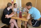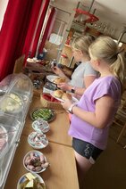 11.30 Uhr zum Mittagessen gab es Schnitzel mit Gemüse und Kartoffeln und zum Nachtisch noch einmal ein Eis. Bis 13 Uhr waren alle Zimmer geräumt, Betten abgezogen und gekehrt.