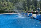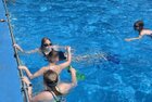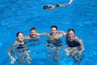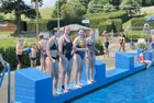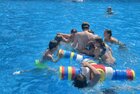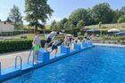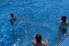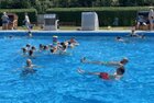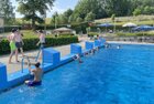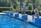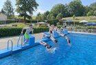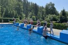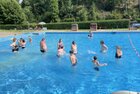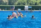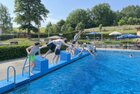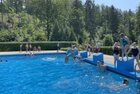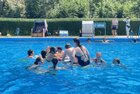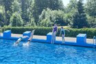 uns in die kühlen Fluten. Tauchen, Schwimmen, Springen, Schwimminsel erobern: