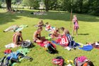 für die Fahrt ins Freibad 2 Kleinbusse und 3 Autos brauchten, hatten sich die