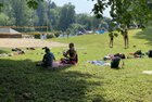 Schattenplatz. Nachdem alle dick mit Sonnencreme eingecremt waren, stürzten wir