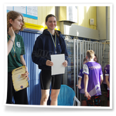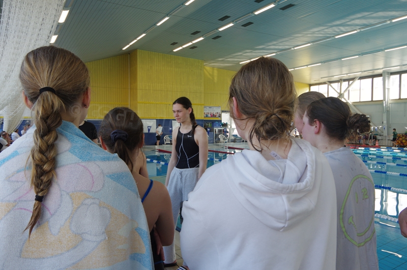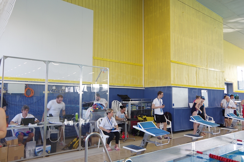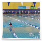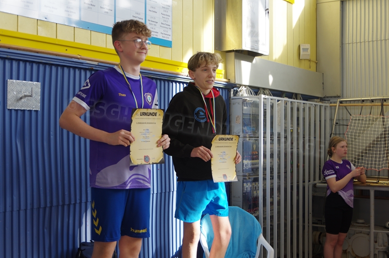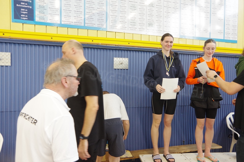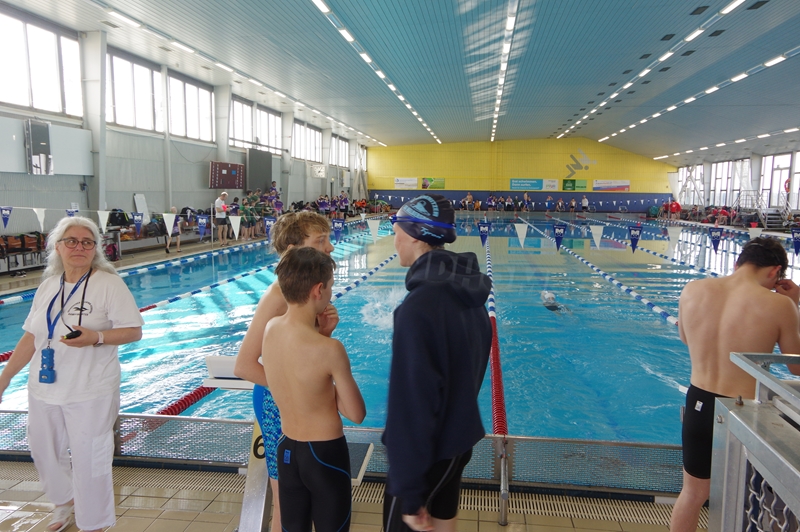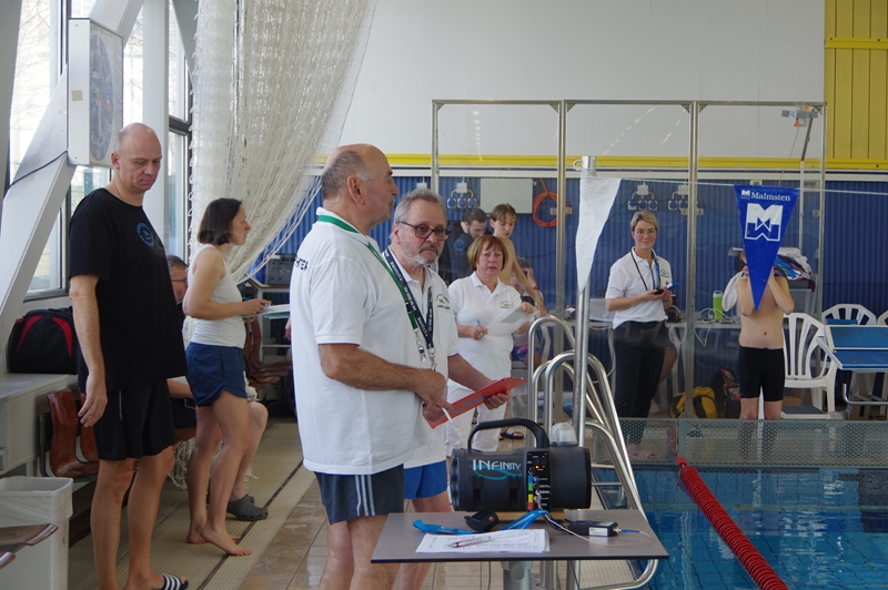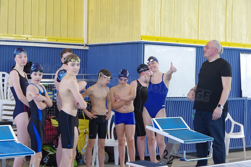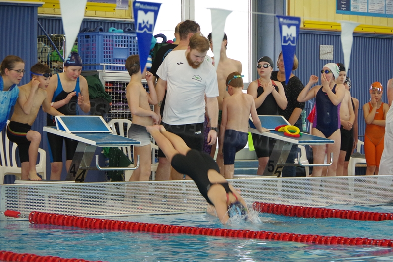 Bevor wir 16.00 Uhr mit dem zweiten Abschnitt begannen, gab es die Siegerehrung für den 1. Teil. Im 2. Abschnitt wurden 50 m Brust, 100 m Rücken, 50 m Freistil und 100 m Brust geschwommen. Während die Jungs hinter der Technik fleißig die Ergebnisse ausrechneten, kämpften jeweils 6 Teilnehmer pro Verein in der Gaudistaffel um gute Platzierungen und eine kleine Tüte voller Süßigkeiten. Ganz zum Schluss konnten wir noch die Siegerehrung für den zweiten Abschnitt machen und waren 18.00 Uhr mit dem Wettkampf fertig.