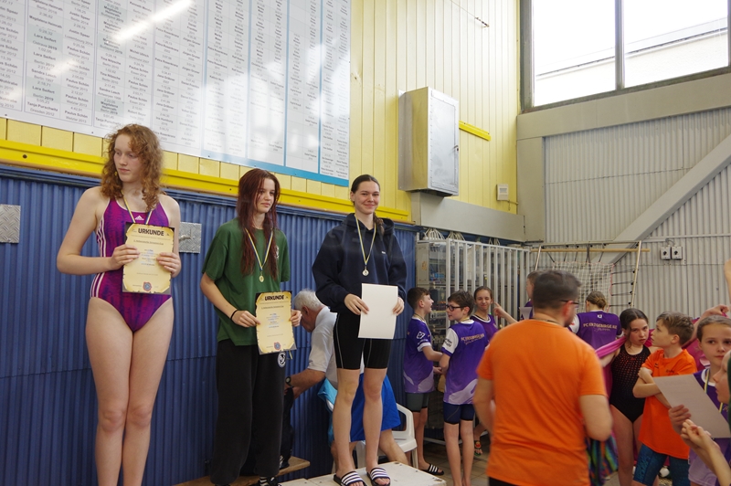 Derr FC Erzgebirge Aue gewann zum dritten Mal in Folge der Wanderpokal und kann diesen nun dauerhaft behalten. Platz 2 in der Mannschaftswertung belegte der Chemnitzer PSV und Platz 3 die Chemnitzer SG Helbersdorf. Für die jüngeren Kinder unseres Vereins war die lange 50m Bahn ziemlich ungewohnt und damit mal eine neue Erfahrung, da sie im Training nur auf der 25m-Bahnen schwimmen. Trotzdem konnten viele ihre Meldezeit unterbieten und/oder gute Platzierungen erreichen.