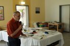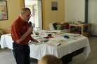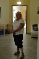 an der Wand zu sehen waren. Das sonnig warme Wetter lud zum Plaudern im Freien