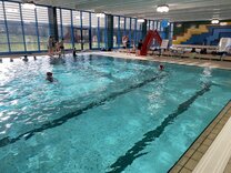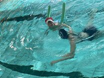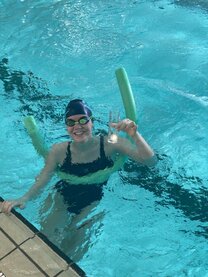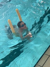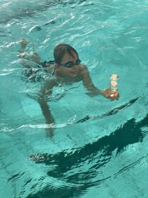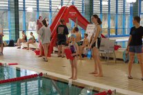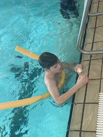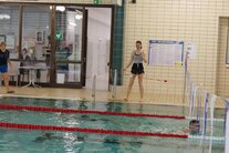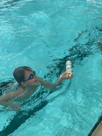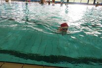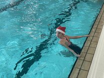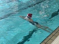 Es folgte nun der lustige Teil: unser Lichtelschwimmen. So wurden beispielsweise Becherpyramiden gestapelt, mit Weihnachtsmannmütze und Licht geschwommen, Adventskalenderschokolade gegessen,... Alle hatten hierbei mächtig viel Spaß. 13.15 Uhr waren aber auch die Meisten sehr geschafft. Wir räumten die Halle, zogen uns in Ruhe an und trafen uns vor der Halle, um mit ausreichend Abstand noch die Siegerehrung zu machen und jeder und jedem einen kleinen Preis zu überreichen.