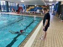 Zum dritten Teil unserer vereinsinternen Bestenermittlung trafen sich am 05.12.21 unsere kleinsten Schwimmer 10 Uhr an der Schwimmhalle "Am Südring". Die Eltern und Großeltern durften leider nicht mit rein, da wir aktuell keine Zuschauer in die Halle mitnehmen können. Zum Einschwimmen wurden noch eimal alle Starts und Wenden geübt und ein paar Bahnen geschwommen. Dann ging es endlich los: über 25m (Anfänger) und über 50m (Fortgeschrittene) kämpften die Mädels und Jungs jeweils in Rücken, Brust und Kraul um gute Platzierungen und schnelle Zeiten. 12.15 Uhr waren alle 12 Wettkämpfe geschafft. Die fleißigen Helfer zogen schnell alle Leinen und wir teilten die Kinder in 4 Staffeln ein.