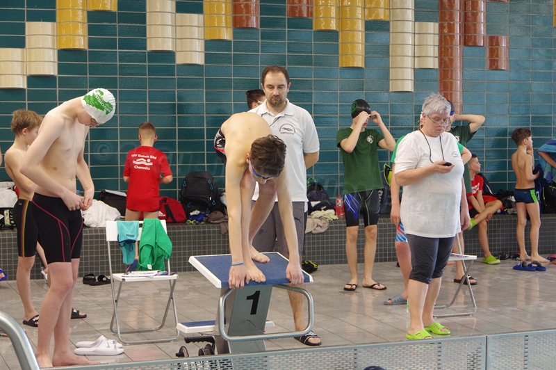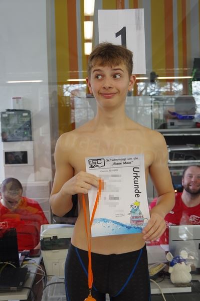 Nach 5 Jahren Pause richtete der TSV Einheit Süd Chemnitz in der Schwimmhalle Gablenz am 02.03.24 den 10. Schwimmcup um die Blaue Maus aus. Zum Einlass 09.45 Uhr trafen wir uns mit 18 Schwimmern, 2 Kampfrichtern und 2 Mannschaftsleitern vor der Halle. Nachdem wir uns in der Schwimmhalle ein schönes Plätzchen erkämpft hatten, übten wir zum Einschwimmen nach den Sprints vor allem noch einmal Starts und Wenden – andere Halle, andere Bedingungen.