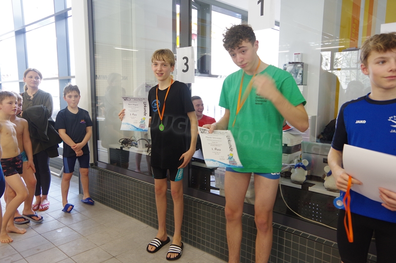Mit nur einer einzigen Disqualifikation, viel Spaß und doch einigen Gewinnern bei der Siegerehrung war es für uns ein sehr schöner, erfolgreicher Wettkampftag. Mitte des 2. Abschnitts war für unsere Schwimmer dann Ende der Veranstaltung und fast alle konnten 15.30 Uhr nach Hause gehen. Lediglich unsere beiden Kampfrichter mussten bis zum Schluss (fast 17.30 Uhr) bleiben. Vielen Dank an Julian und Vanessa!