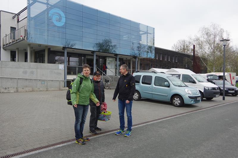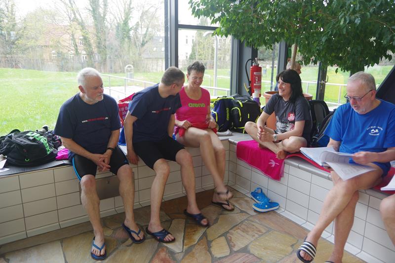 Am Donnerstag, den 14.04.16 machten wir uns auf den Weg nach Gera, wo in diesem Jahr die DMM auf der langen Bahn ausgetragen wurden. Ab 18 Uhr standen an diesem Abend 4 Bahnen zum Einschwimmen bereit. Diese Gelegenheit nutzten wir, da nicht alle von uns die Halle von früheren Wettkämpfen bereits kannten. Anschließend bezogen wir unsere Zimmer im Hotel. Den restlichen Abend saßen wir gemütlich auf einem der Zimmer zusammen und stärkten uns an unseren selbst gemachten Köstlichkeiten (Danke Gerlind! Es war wie immer lecker und reichlich!).