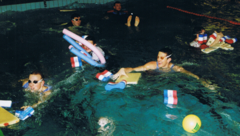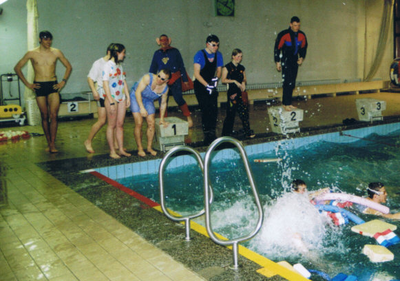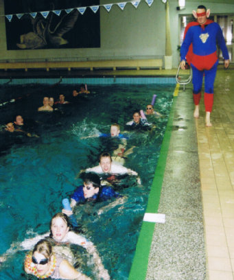 Das Faschingsschwimmen in diesem Jahr fiel genau in die Ferien und so waren gar nicht viele Kinder da. Aber wir hatten wie letztes Jahr sowieso nur 3 Bahnen zur Verfügung und so war das gar nicht schlimm. Mit Kostüm schwammen wir fast die ganze Stunde lang kleine Staffeln und wurden dabei von den Großen fleißig unterstützt. In der zweiten Stunde waren die Großen bei Patrick dran, die ebenfalls mit Kostüm in den Staffeln kämpfen mussten :-)