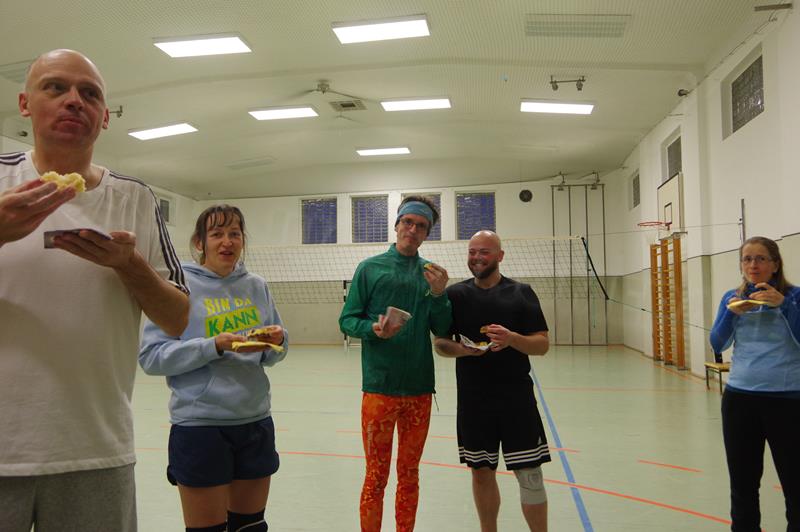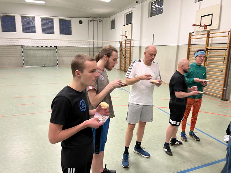 Die Jahresabschlussfeier für das Jahr 2022 fand am 14.01.2023 traditionell in Flöha statt. Bereits 16.00 Uhr trafen sich die Ersten in der Turnhalle. Mit großem Einsatz und unter den scharfen Augen eines sehr unparteiischen Schiedsrichters spielten wir 4 Sätze Volleyball. Zwischendurch gab es ein kleines Kuchenbuffet zur Stärkung.