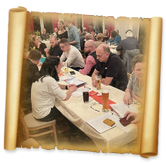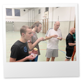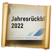 18.00 Uhr begann schließlich der festliche Teil des Abends. Mit etwa 50 Gästen war unsere Feier sehr gut besucht. Zuerst erhielten in alt bewährter Form alle Sieger und Platzierten der im November letzten Jahres ausgetragenen vereinsinternen Bestenermittlung Medaillen, Urkunden und Schokolade. (Die eigentlichen Preise sind noch immer irgendwo zwischen Bangladesch, Hamburg und Chemnitz in Arbeit.) 18.30 Uhr gab es Abendessen. Anschließend ließen wir mit Fotos und kleinen Geschichten unser gemeinsames Sportjahr 2022 Revue passieren. Während sich die Ersten danach bereits wieder auf den Heimweg machten, blieb ein Teil noch bis nach 23 Uhr zum gemütlichen Quatschen.