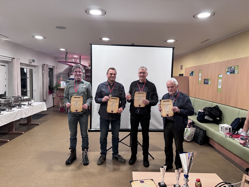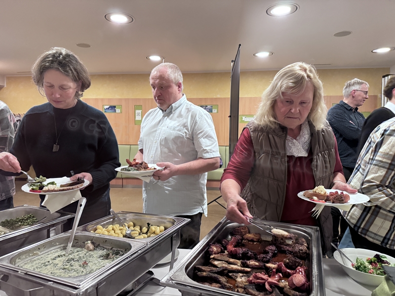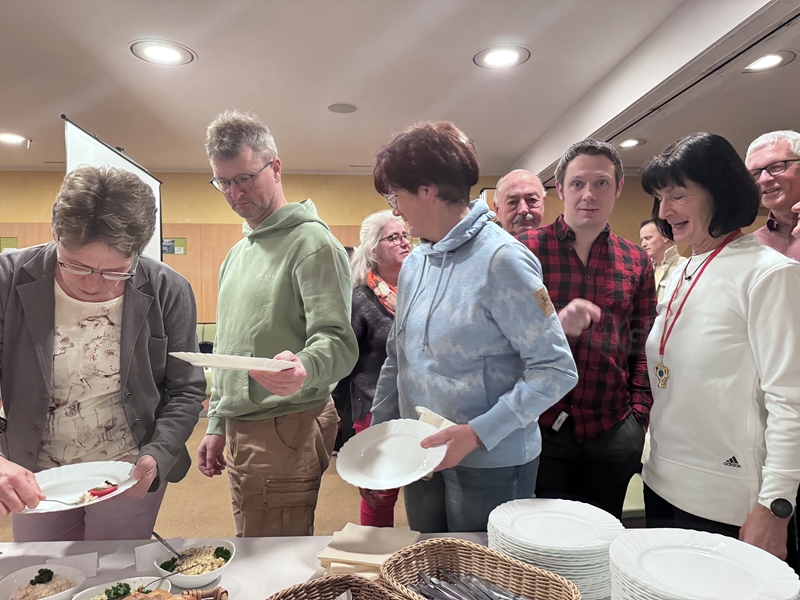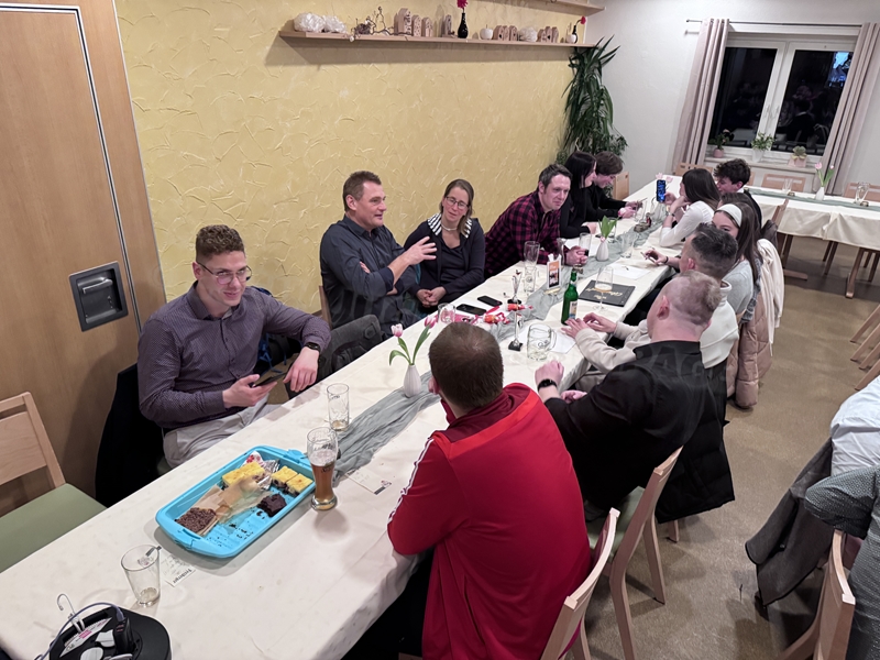 18.00 Uhr versammelten wir uns schließlich alle im "Sportcasino". Das winterliche Wetter hatte zum Glück nicht für glatte Straßen gesorgt und so konnten auch alle sicher anreisen. Vor dem Abendessen ehrten wir zunächst in guter Tradition die Sieger und Platzierten der "vereinsinternen Bestenermittlung" vom November 2024. Nachdem sich alle am Buffet bedient hatten, ließen wir mit Fotos und kleinen Anekdoten die 19 Veranstaltungen des letzten Jahres noch einmal kurz Revue passieren. Anschließend setzten wir uns in Gruppen zusammen und plauderten, lachten und planten neue gemeinsame Unternehmungen für das laufende Jahr. Gegen 23 Uhr machte sich ein Jeder wieder auf den Heimweg - durch das nun doch winterliche Schneetreiben.