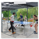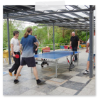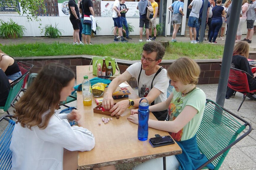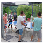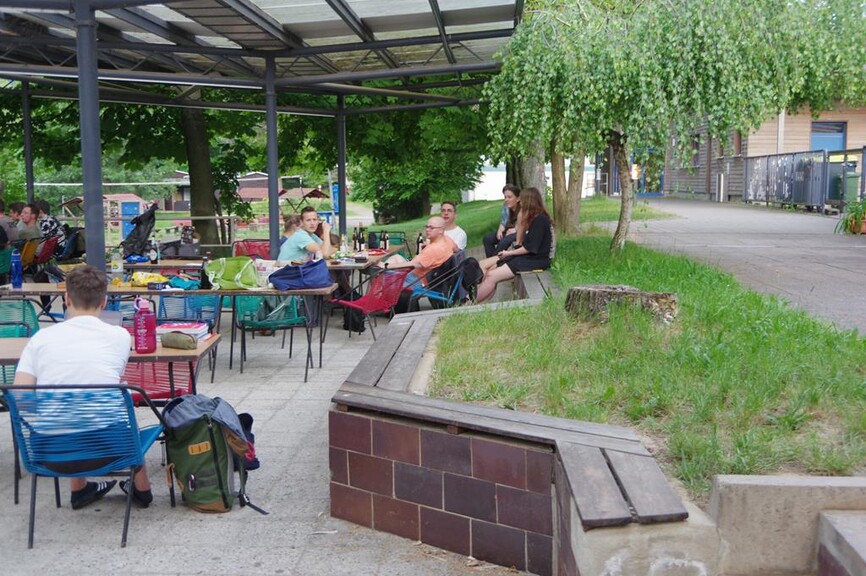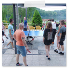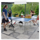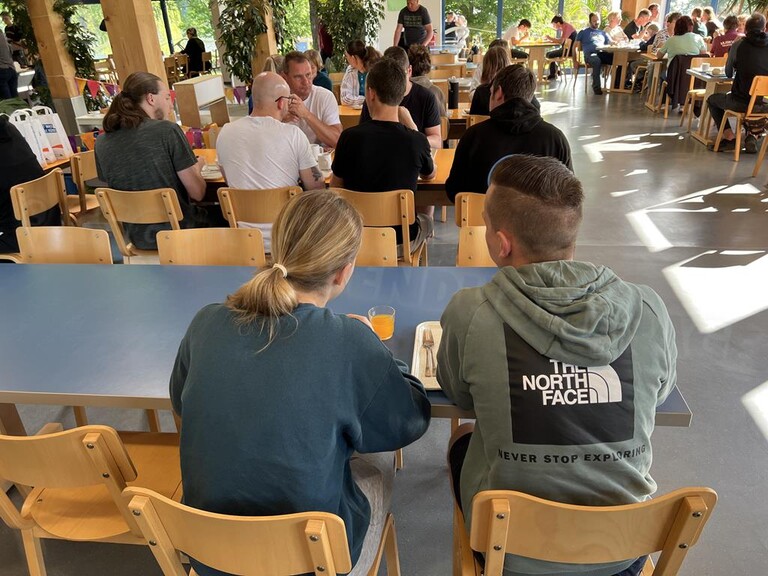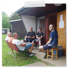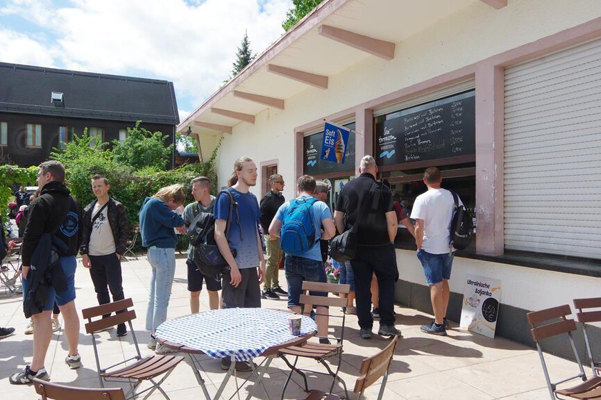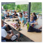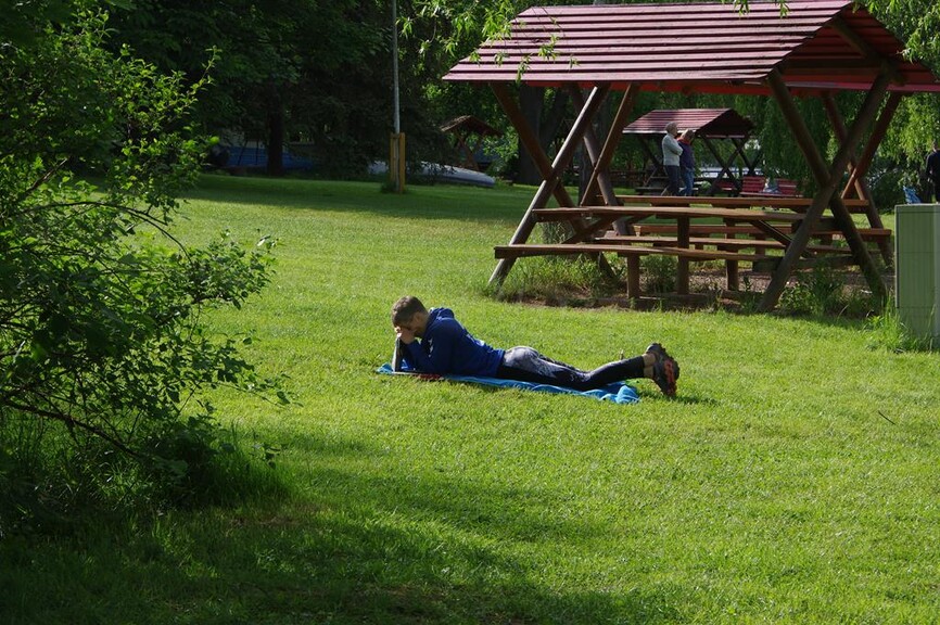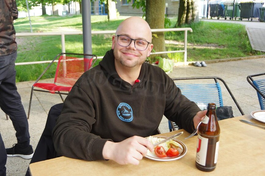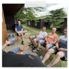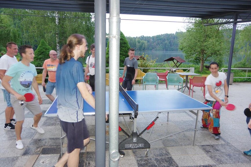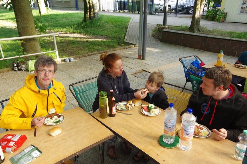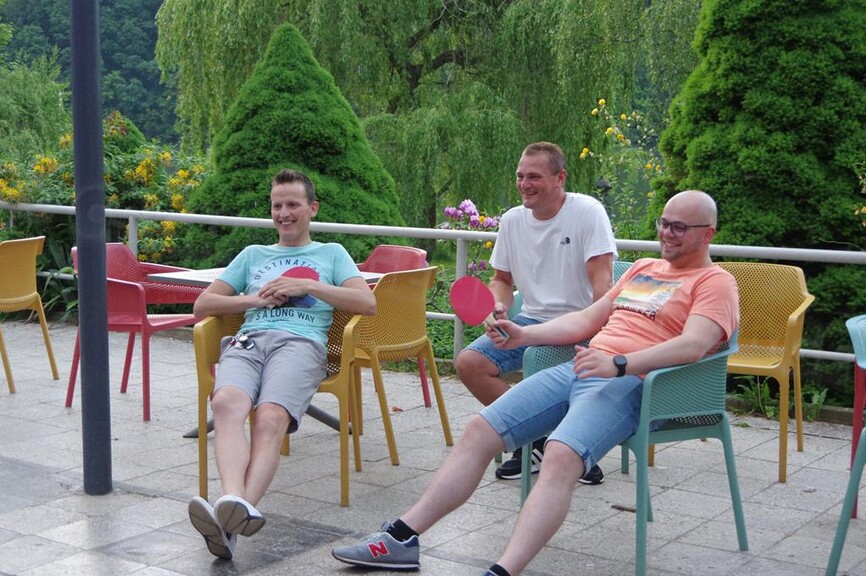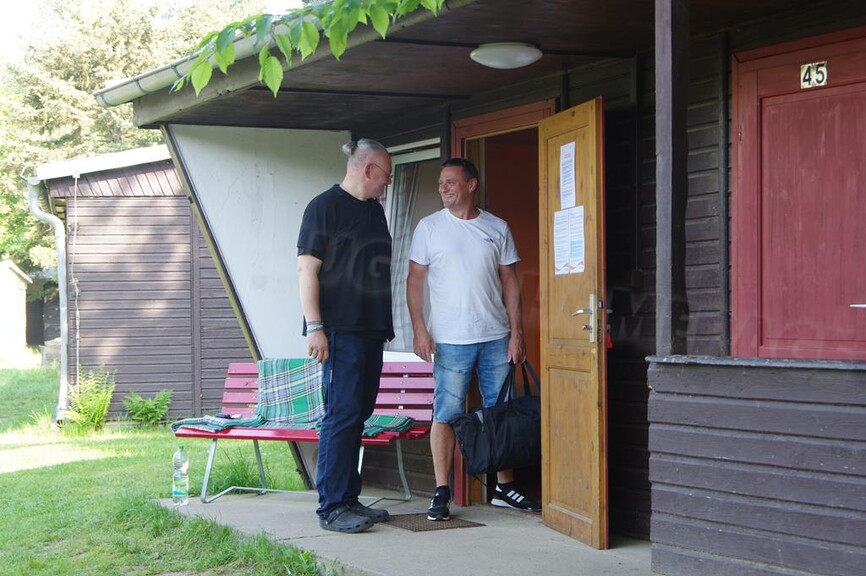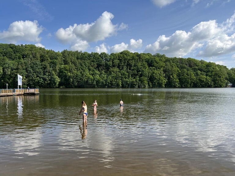 Am Freitag, den 20.05.22 bezogen wir mit 19 Schwimmern 7 Bungalows in der JH Falkenhain an der Talsperre Kriebstein. Das Wetter war schwühl heiß und so saßen wir, so bewegungsarm wie möglich, vor unseren Hütten, quatschten und hießen alle Ankommenden Willkommen. 18.30 Uhr waren alle da und wir gingen zum Abendessen (Nudeln mit Gulasch und Salate). Den restlichen Abend verbrachten wir mit Tischtennis, Karten spielen, in Gespräche vertieft oder mit Lernen unter der überdachten Terrasse, denn das Gewitter war inzwischen über uns hereingebrochen und es regnete, blitzte und stürmte.
