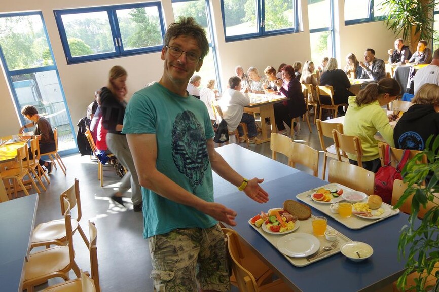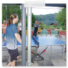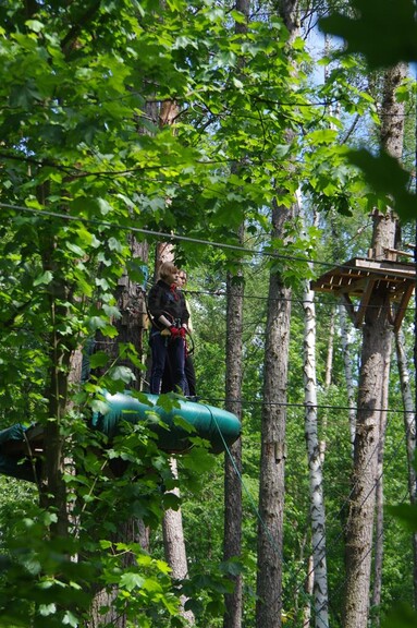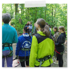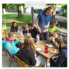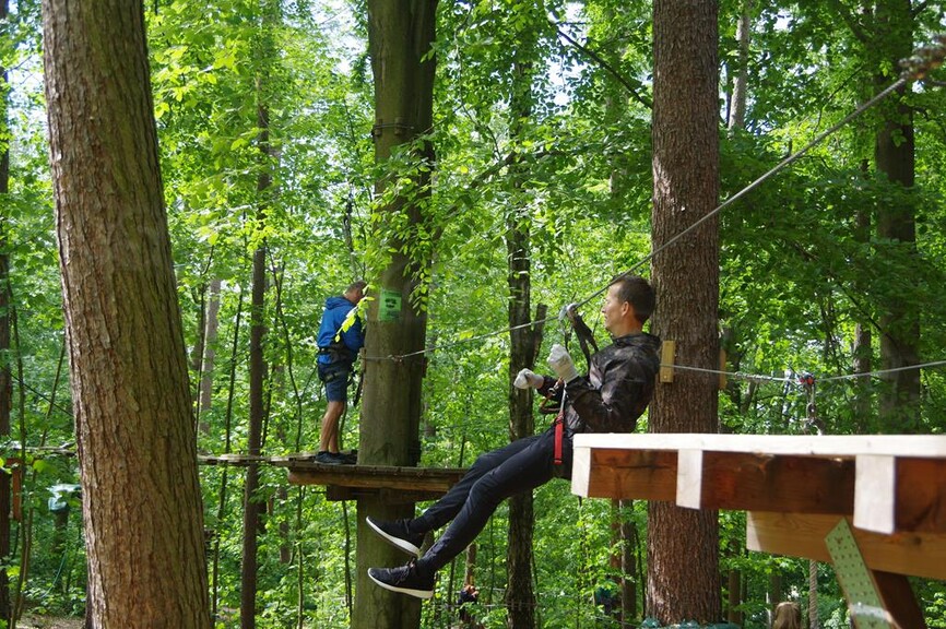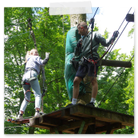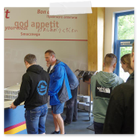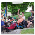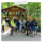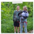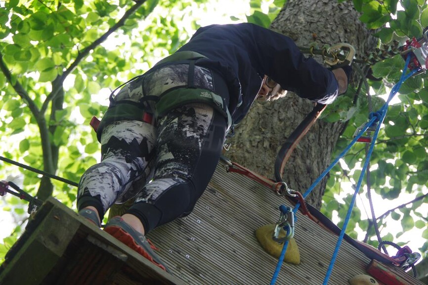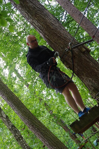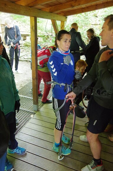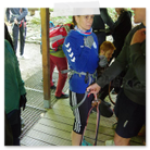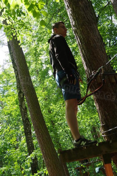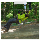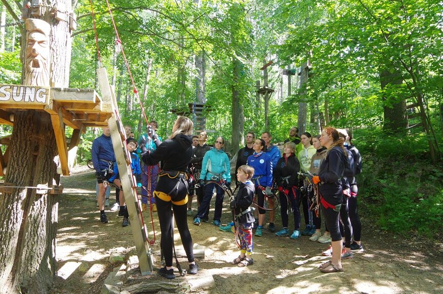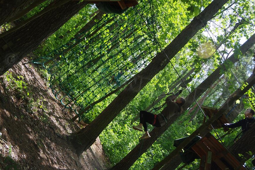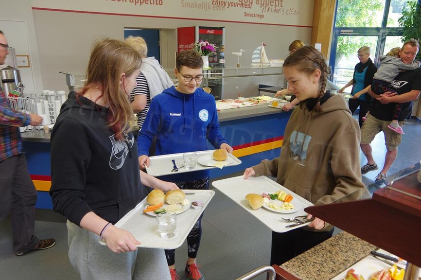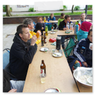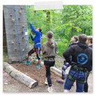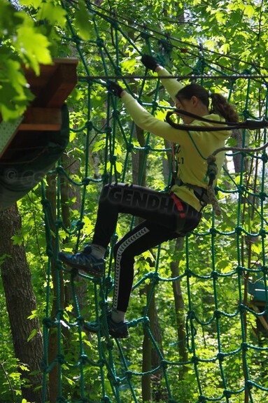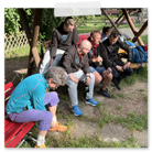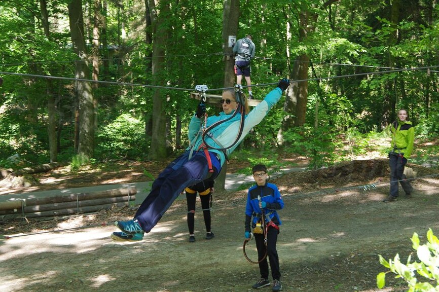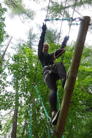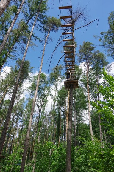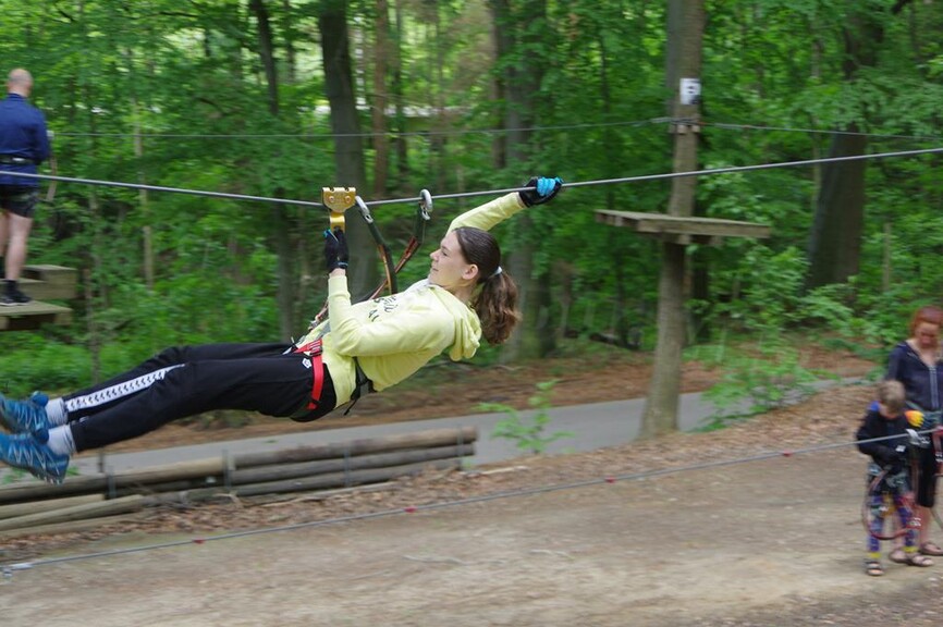 Am Samstag trafen sich einige 07.00 Uhr zum Frühsport: 5 km locker laufen entlang der Talsperre und anschließend noch 5 Runden Mini-Workout auf der Wiese der JH. Nach dem Duschen gab es pünktlich 08.00 Uhr ein reichliches Frühstück. Danach wanderten wir an der Talsperre entlang bis Erlebach, um 10.05 Uhr mit der Fähre nach Kriebstein überzusetzen. Dort stand für alle von 10.30 - 13.00 Uhr Klettern im Kletterwald auf dem Programm. Das Wetter war dafür ideal. Nach einer kurzen Einweisung und dem obligatorischen Probeklettern gab es 6 Parcours zur Auswahl: durch unterschiedliche Höhen und unterschiedliche Schweregrade der einzelnen Kletterelemente war für jeden die passende Herausforderung dabei. Nachdem wir alle Klettergurte wieder abgelegt hatten, holten wir uns am Kiosk noch Pommes oder Roster und fuhren 14.00 Uhr wieder mit der Fähre zurück nach Erlebach und liefen wieder zurück zur Herberge. Nachmittags wollten wir eigentlich noch eine Runde baden bzw. einmal bis zum anderes Ufer schwimmen. Leider hatte das Gewitter vom Vorabend nicht nur die Temperaturen deutlich abgekühlt, es ging auch ziemlich starker Wind. So trauten wir uns nicht ins Wasser, sondern spielten Volleyball oder faulenzten. Zum Abendbrot grillten wir Steaks, Roster und Käse. Auch an diesem zweiten Abend saßen wir wieder gemütlich auf der großen überdachten Terrasse zusammen.