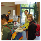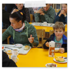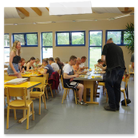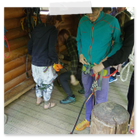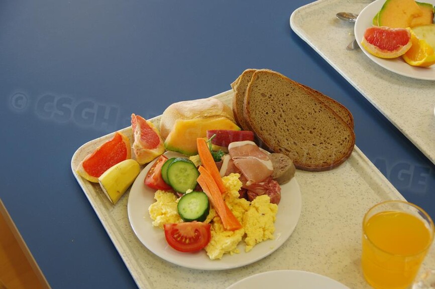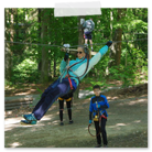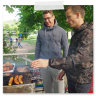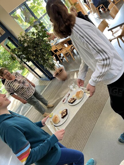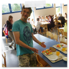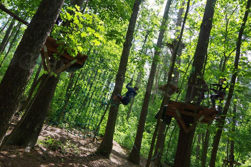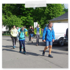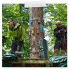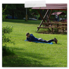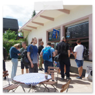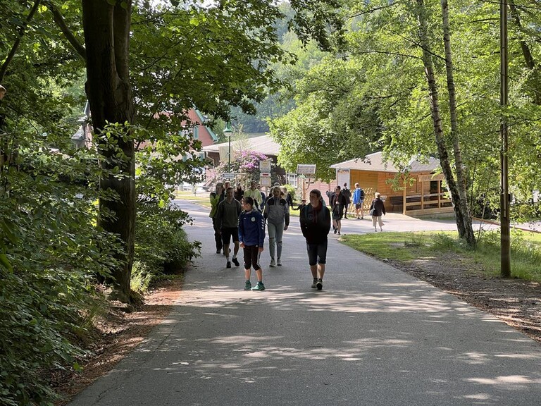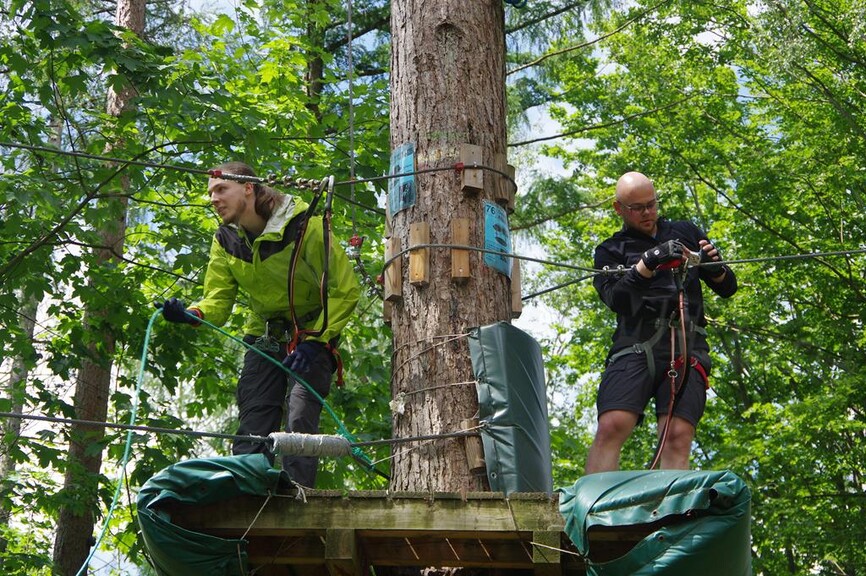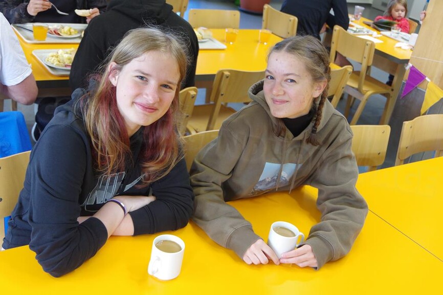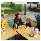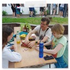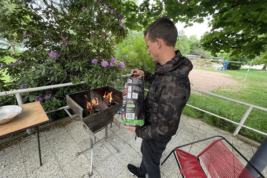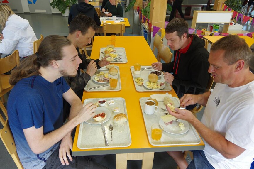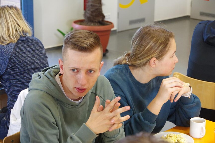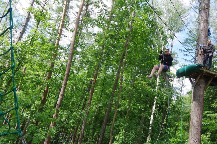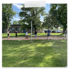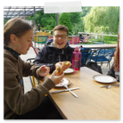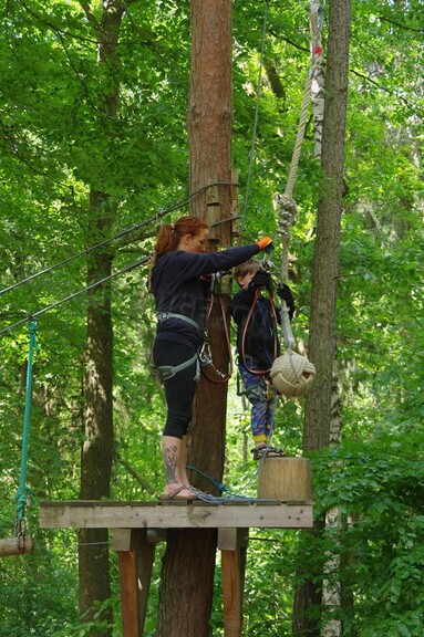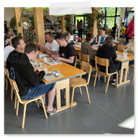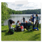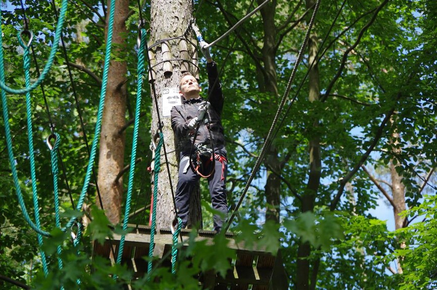 Am Samstag trafen sich einige 07.00 Uhr zum Frühsport: 5 km locker laufen entlang der Talsperre und anschließend noch 5 Runden Mini-Workout auf der Wiese der JH. Nach dem Duschen gab es pünktlich 08.00 Uhr ein reichliches Frühstück. Danach wanderten wir an der Talsperre entlang bis Erlebach, um 10.05 Uhr mit der Fähre nach Kriebstein überzusetzen. Dort stand für alle von 10.30 - 13.00 Uhr Klettern im Kletterwald auf dem Programm. Das Wetter war dafür ideal. Nach einer kurzen Einweisung und dem obligatorischen Probeklettern gab es 6 Parcours zur Auswahl: durch unterschiedliche Höhen und unterschiedliche Schweregrade der einzelnen Kletterelemente war für jeden die passende Herausforderung dabei. Nachdem wir alle Klettergurte wieder abgelegt hatten, holten wir uns am Kiosk noch Pommes oder Roster und fuhren 14.00 Uhr wieder mit der Fähre zurück nach Erlebach und liefen wieder zurück zur Herberge. Nachmittags wollten wir eigentlich noch eine Runde baden bzw. einmal bis zum anderes Ufer schwimmen. Leider hatte das Gewitter vom Vorabend nicht nur die Temperaturen deutlich abgekühlt, es ging auch ziemlich starker Wind. So trauten wir uns nicht ins Wasser, sondern spielten Volleyball oder faulenzten. Zum Abendbrot grillten wir Steaks, Roster und Käse. Auch an diesem zweiten Abend saßen wir wieder gemütlich auf der großen überdachten Terrasse zusammen.