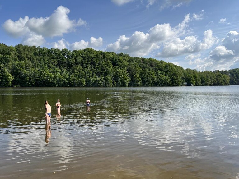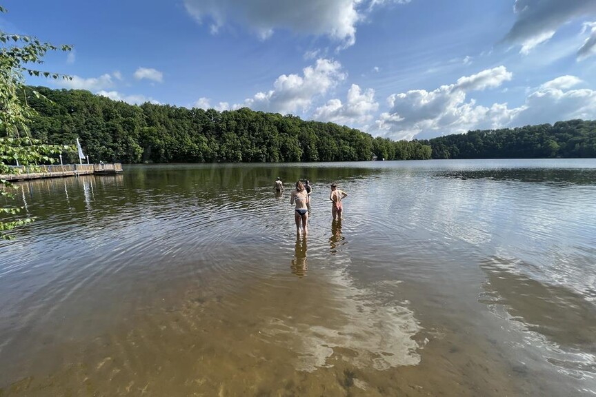 Am Sonntag räumten alle nach dem Frühstück die Hütten aus, kehrten und schafften die Taschen ins Auto. Da der Wind nachgelassen hatte, trauten sich ein paar Mutige zum Abschluss doch noch mal kurz in die Talsperre.