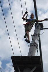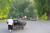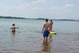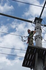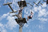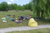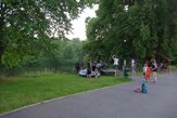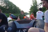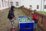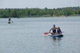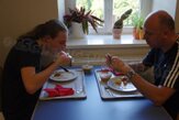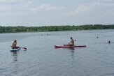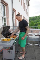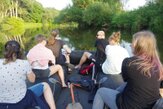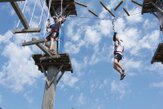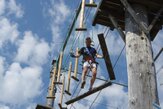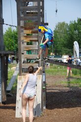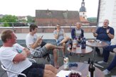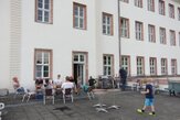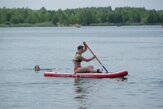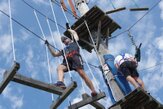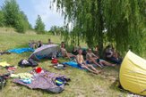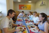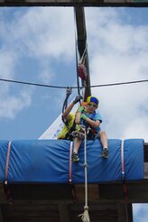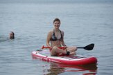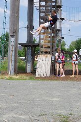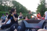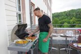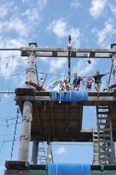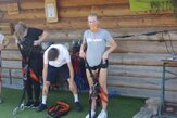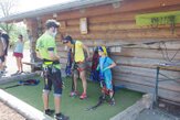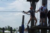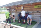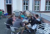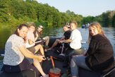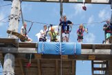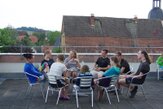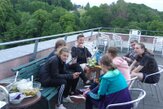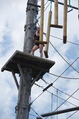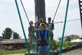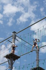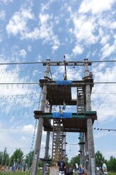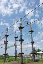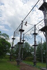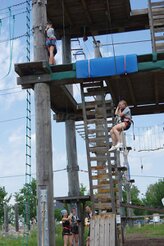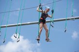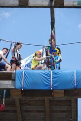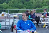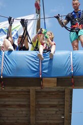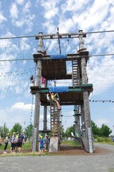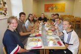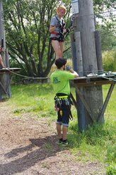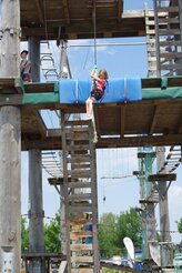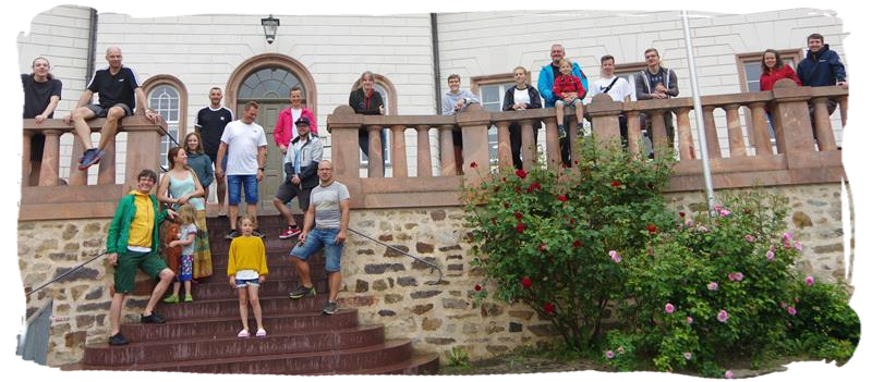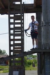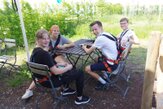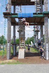 Der Samstag begann für Einige mit Frühsport (Joggen und Treppentraining) schon 06.15 Uhr. Spätestens zu Frühstück 8.00 Uhr waren schließlich alle wach. Anschließend machten wir uns auf den Weg zum Markkleeberger See. Dort hatten wir ab 10 Uhr Klettern im Kletterpark bestellt. Bei schwülen 28 °C und nach einer ausführlichen Einweisung, kletterten wir etwa 3 Stunden und 3 verschiedenen Höhen: jeder nach seinen Möglichkeiten. Für manche war es eine echte Herausforderung oder der Kampf gegen die Höhenangst, für manche einfach „Spaß in luftiger Höhe“. Am Ende schafften die Meisten den „Base-jump“, den Sprung von der 11m hohen Plattform in die Tiefe. Danach hatten wir uns unsere Abkühlung verdient. Wir verbrachten den Rest des Nachmittags am See mit chillen und schwimmen. Außerdem hatten wir super viel Spaß mit den 3 Stand-up-Paddle-Boards, die wir mitgebracht hatten. Erst, als die Gewitterwolken am Himmel immer schwärzer wurden, packten wir ein und fuhren in unser Schloss zurück. Abends zum Grillen auf der Terrasse hatte sich der Regen schon wieder verzogen und wir genossen den herrlichen Abend.
