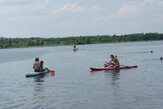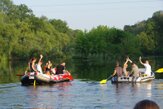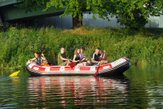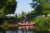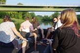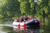 So machten wir uns mit 22 Leuten am 12.06.20 auf den Weg in unser Schloss. Uns erwartete eine sehr moderne, neu eingerichtete, freundliche Herberge in historischen Gemäuern. Jedes Zimmer hatte auch Dusche und WC. Die Abstandsregeln ließen nur max. 2 Personen pro Zimmer bzw. 1 Familie pro Zimmer zu. So hatten wir die gesamte 2. Etage für uns. Nach dem Abendessen spazierten wir noch einmal in den Ort und zur Mulde, um beim örtlichen Kanuverein Boote auszuleihen und 1,5 Stunden gemütlich auf der Mulde zu paddeln. (Die Boote waren zwar nicht im besten Zustand, aber wir hatten trotzdem – oder gerade deshalb – sehr viel Spaß).