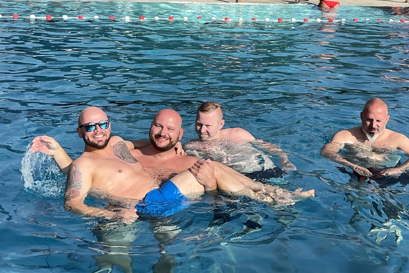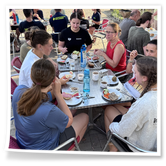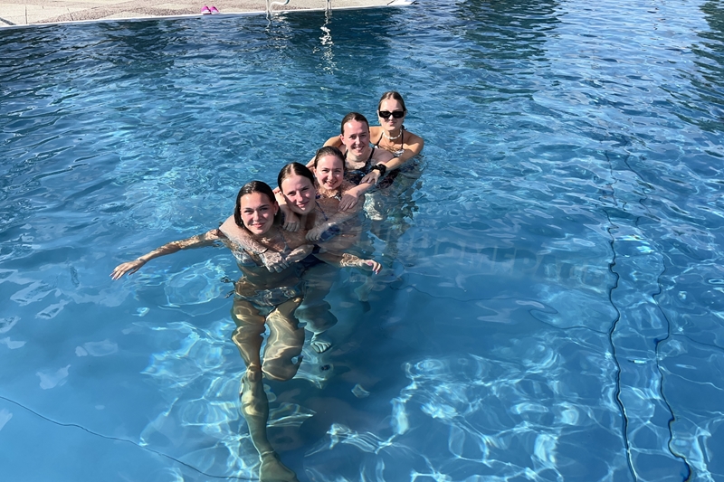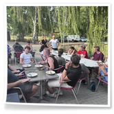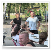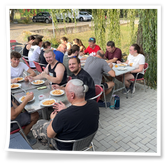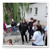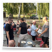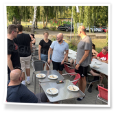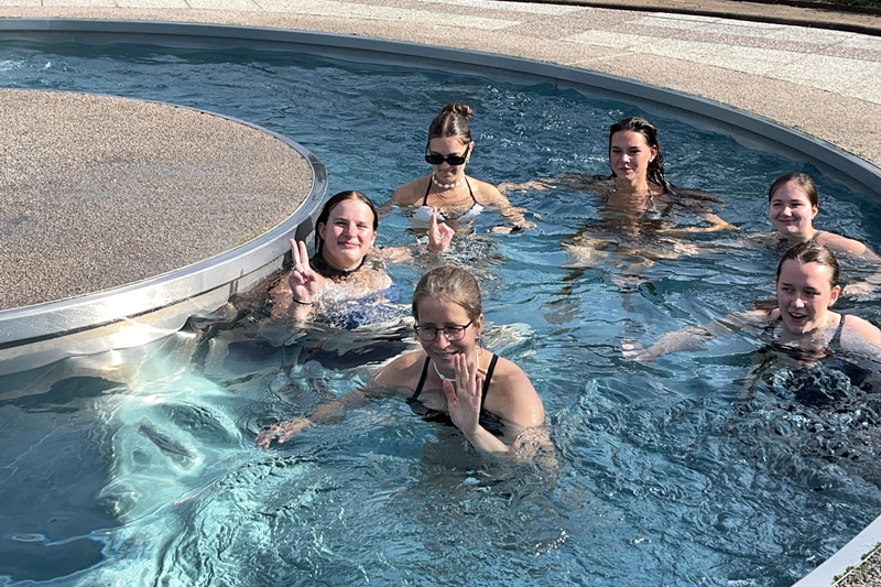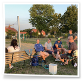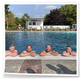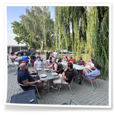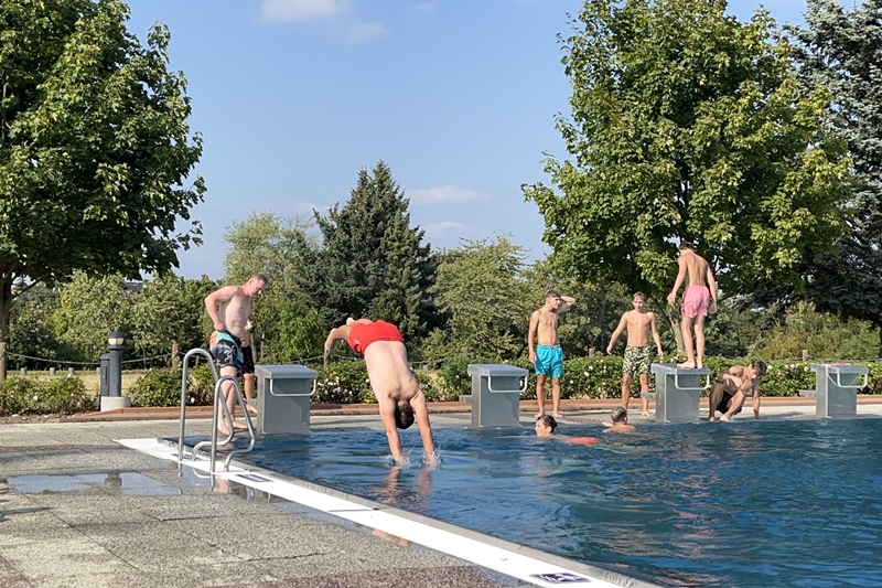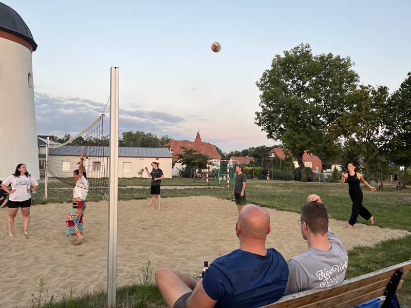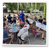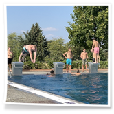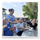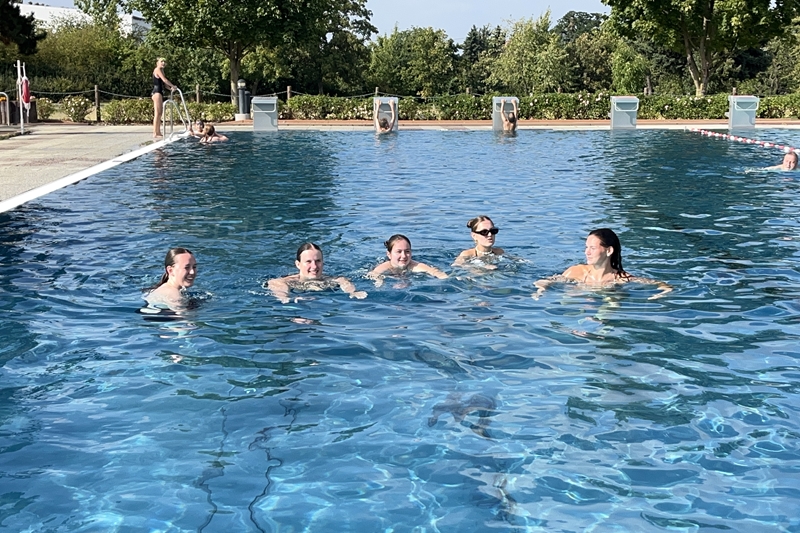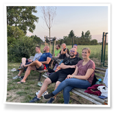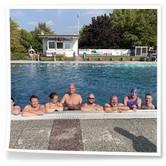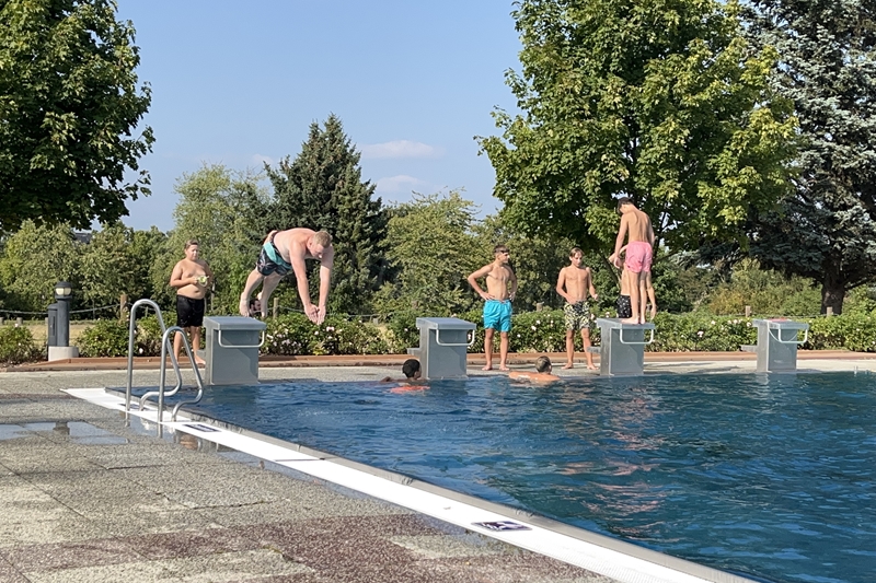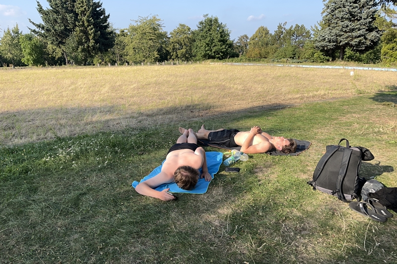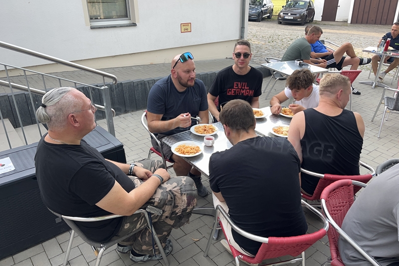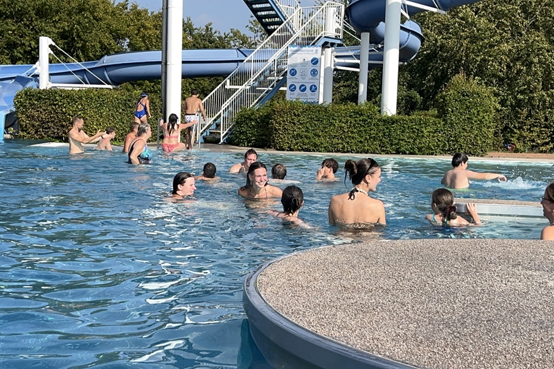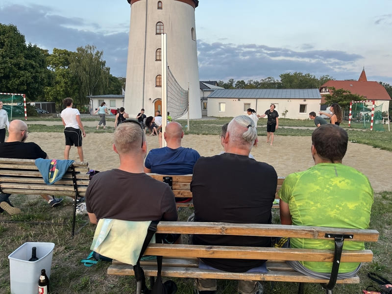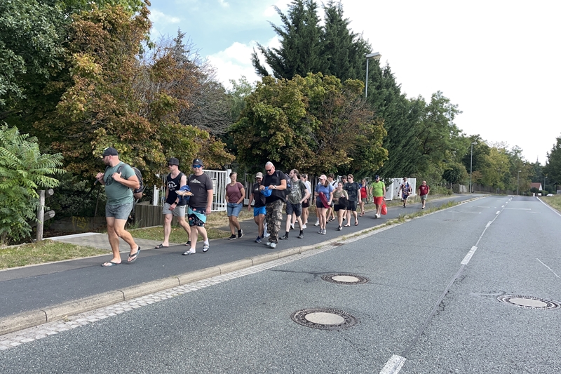 Nachdem wir uns 7 lange Wochen beim Training nicht gesehen hatten, begann das neue Sportjahr 2025/26 für 21 Schwimmer vom 15.08. – 17.08.25 mit dem Trainingslager in der JH „Strehla“ bei Riesa. Fast alle waren am Freitag 16.30 – 18.00 Uhr pünktlich in der alten Mühle angereist. Der Sommer hatte es bereits letzte Woche sehr gut gemeint und die Temperaturen lagen deutlich über 30°C, was auch an diesem Abend so war. So setzten wir uns zum und nach dem Abendessen einfach gemütlich vor die Jugendherberge zusammen und erzählten ausgiebig und bis nach Mitternacht. (Zum Schlafen in den Zimmern war es eh zu warm.) Julian, der an diesem Tag Geburtstag hatte und Jessi, deren Geburtstag schon ein paar Tage zurück lag, bekamen jeweils Kuchen geschenkt und alle freuten sich, über den leckeren Nachtisch.