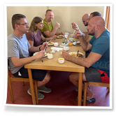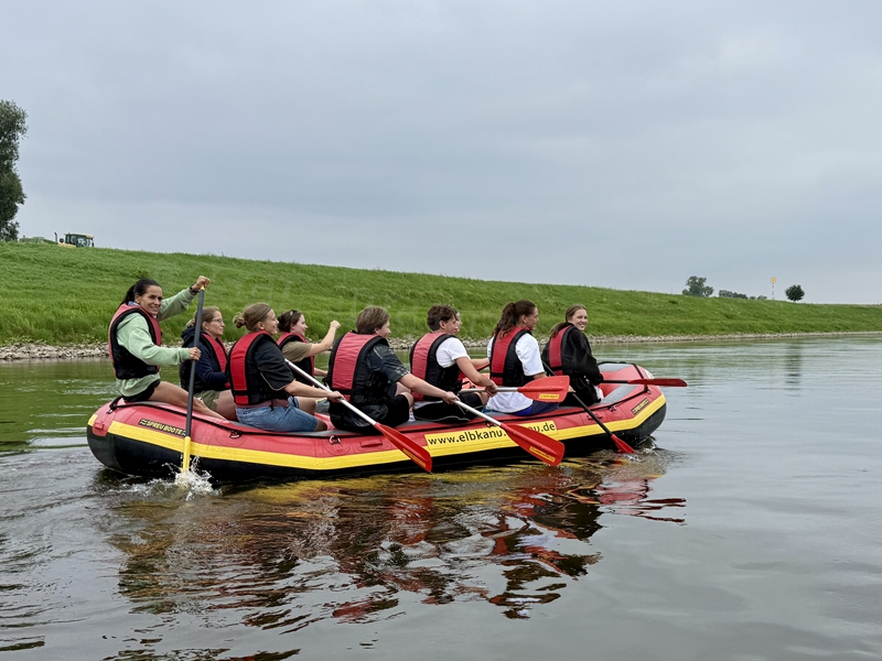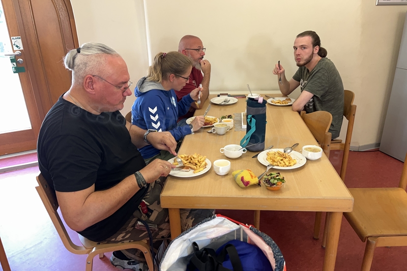 Die Herberge war für die meisten bis dahin unbekannt. Wir haben uns jedoch wohl gefühlt. Besonders das Essen war richtig toll und die Zimmer waren modern und sauber mit Dusche / WC im Zimmer. Das Außengelände bot viele Möglichkeiten zur Abendgestaltung. Ein großes Dankeschön gilt auch Herrn Schulze vom „ElbKanu Torgau“, der sowohl in der Vorbereitung und Planung als auch in der Durchführung der Schlauchboottour uns freundlich und sehr hilfsbereit zur Seite stand.