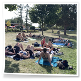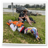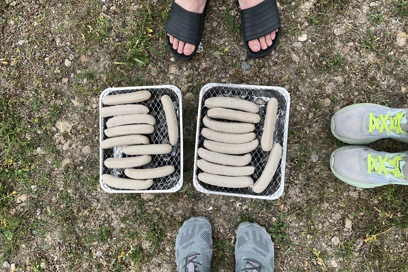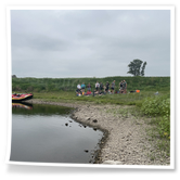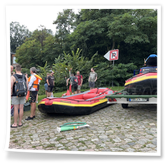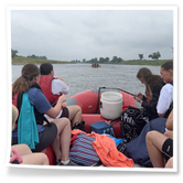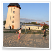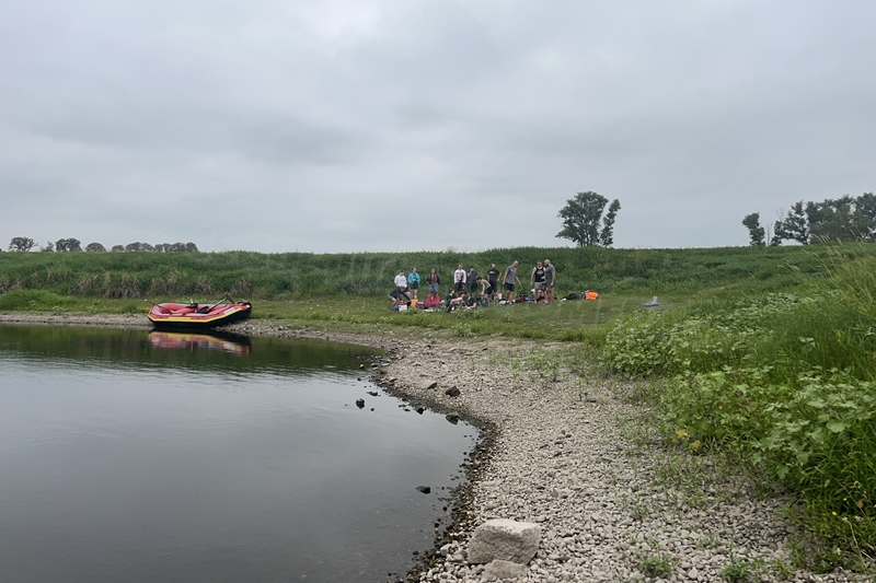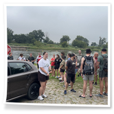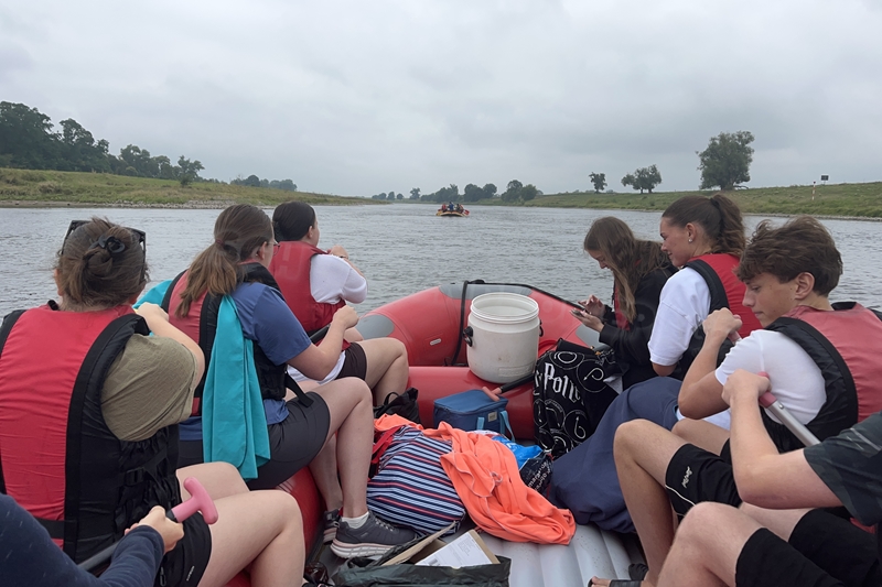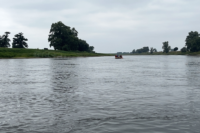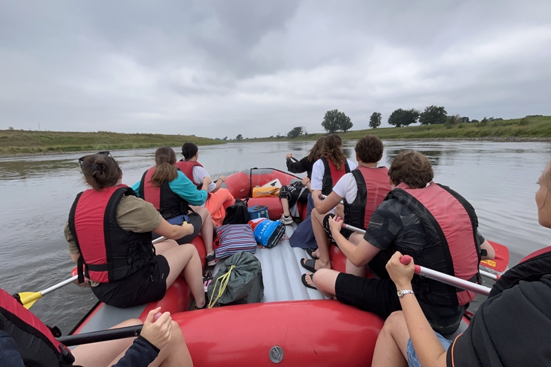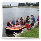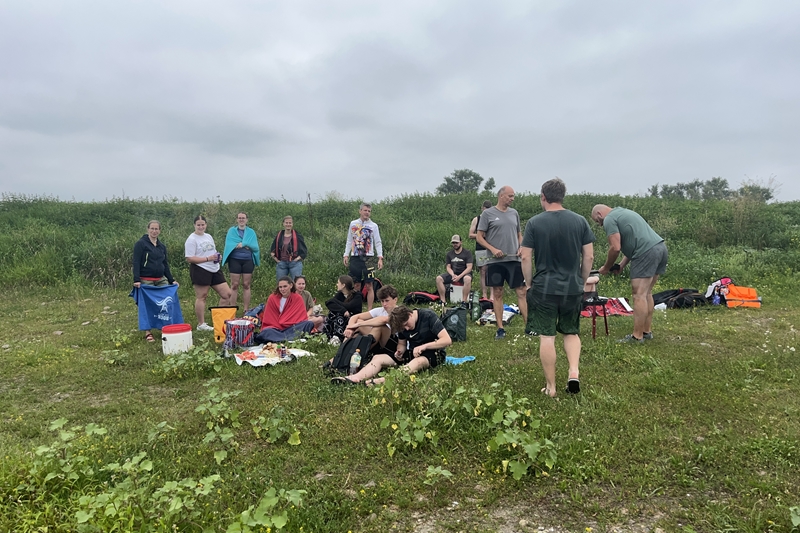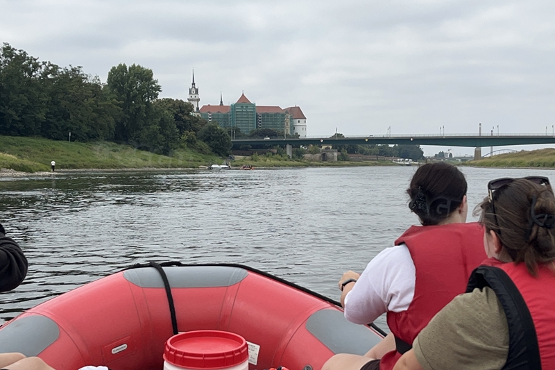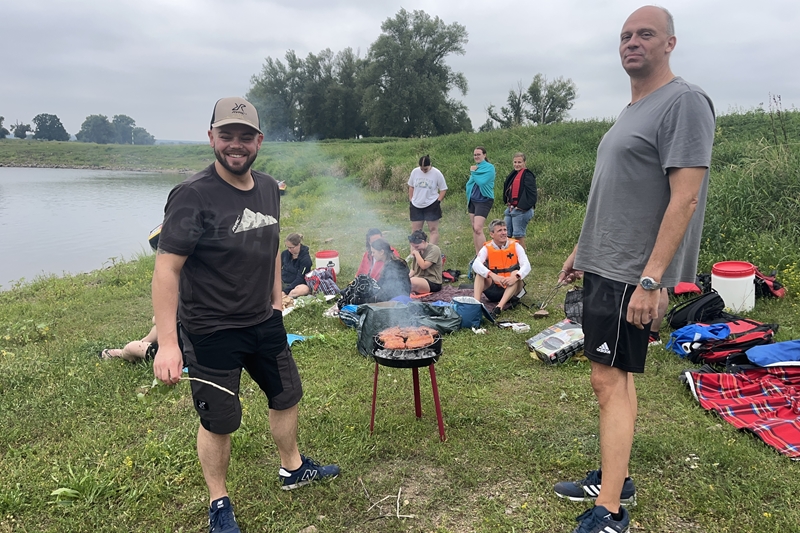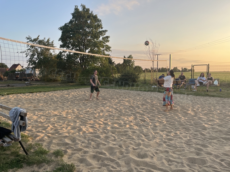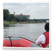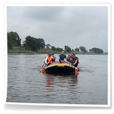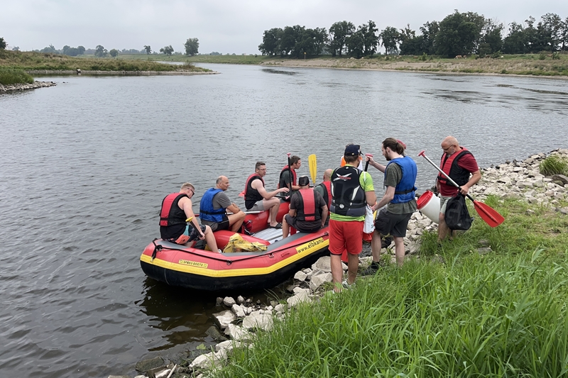 Zum Frühsport am Samstag quälten sich immerhin vier von uns aus den Betten und joggten an der Elbe bei Sonnenaufgang 7 km. 07.30 Uhr gab es für alle Frühstück. Danach brachen wir mit 4 Autos auf nach Belgern zur Elbfähre. Dort setzten wir alle Mitfahrer ab, denn Belgern war 10.00 Uhr der Startpunkt für unsere Schlauchboottour bis Torgau. Die Autofahrer fuhren weiter bis Torgau, wo wir uns 09.45 Uhr mit Herrn Schulze vom „ElbKanu Torgau“ trafen, der uns 4 zusammen mit den Booten wieder mit nach Belgern nahm. Der Plan funktionierte so weit gut. Das einzige Problem war das Wetter. Es hatte sich eine dicke Wolkenschicht vor die Sonne geschoben und so waren es keine 35°C mehr, sondern kühle 20°C. Dafür hatten wir viel zu wenig Klamotten mit. Zum Glück gab es wenigstens Schwimmwesten. Wir setzten die zwei großen Schlauchboote mit ein und startet 10.30 Uhr bei Kilometer 140 elbabwärts aber mit ordentlich Gegenwind. Durch das Paddeln wurde es etwas wärmer. Bei Kilometer 148 zogen wir 12.00 Uhr die Boote aus der Elbe und grillten uns unsere mitgebrachten Lebensmittel zum Mittag. Zwei Mutige sprangen sogar in die Elbe und schwammen flussaufwärts. 13.00 Uhr ging es weiter bis zur Elbbrücke in Torgau beim Kilometer 154,4, wo Herr Schulze 14.30 Uhr schon bereitstand und seine Boote wieder in Empfang nahm. Inzwischen hatte es auch die Sonne durch die Wolken geschafft und wir konnten nach der Rückankunft in der JH direkt zum „Nixenbad“ in Strehla laufen. Bei 25°C Außentemperatur und 26°C Wassertemperatur konnte man es gut im Wasser aushalten und so hatten wir beim Plantschen und Rutschen jede Menge Spaß. 18.30 Uhr zum Abendessen in der Herberge waren alle richtig hungrig und freuten sich über Vorsuppe, Schnitzel mit Pommes und Blumenkohl und Salat. An dem Abend war es weniger warm als gestern. Wir spielten bis zur Finsternis Volleyball hinter der Mühle. Anschließend hockten noch einmal alle zusammen vorm Haus und quatschten.