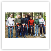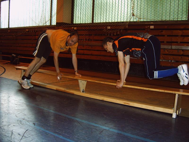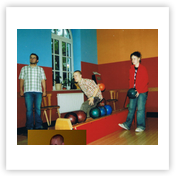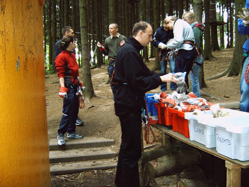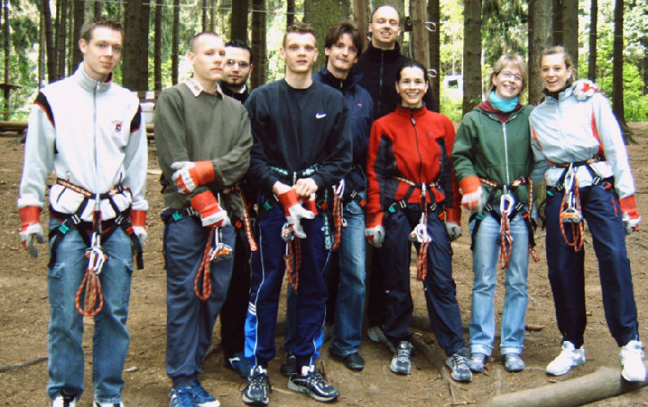 Für die ganz Harten begann der Freitag mit Frühsport ab 7.00 Uhr. Wir gingen 30min am Ufer der Talsperre entlang joggen. 8.00 Uhr gab’s Frühstück und dann ging es los Richtung Talsperre Pöhl zum Klettern im Hochseilgarten. Nachdem wir unsere Kletterhosen + Handschuhe angezogen und eine kurze Einweisung erhalten hatten, konnte sich jeder selbst in den unterschiedlichen Parcouren „Fitness“, „Abenteuer“ und „Risiko“ ausprobieren. Und Mancher, der bis dahin dachte, er habe Höhenangst, lernt plötzlich bei „Tarzansprung“, „Seilbahn“, „Skateboard“, u.s.w. ganz neue Seiten an sich kennen. Den Muskelkater in Unterarmen und Bauch spürten wir auf alle Fälle am nächsten Tag. Als wir im Kletterwald waren, schien die Sonne und so starteten wir optimistisch Richtung Pirk. Zunächst wurde im Globus eingekauft und Mittag gegessen. Doch als wir wieder herauskamen, hatte sich der Himmel schon wieder zugezogen. So verbrachten wir den restl. Nachmittag mit Schlafen, Tischtennis, Skat und Quatschen. Pünktlich 18.00 Uhr ging es zum Abendbrot (Makkaronie mit Bolognese), denn von 19.00 – 21.00 Uhr hatten wir 2 Bahnen Bowling in Taltitz bestellt.
