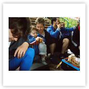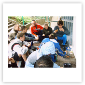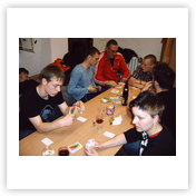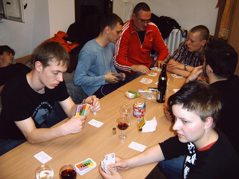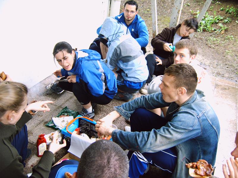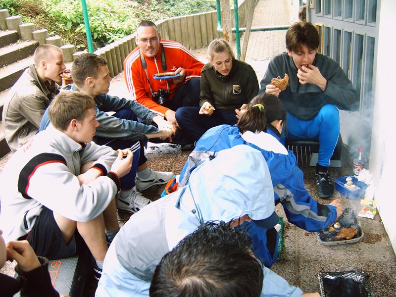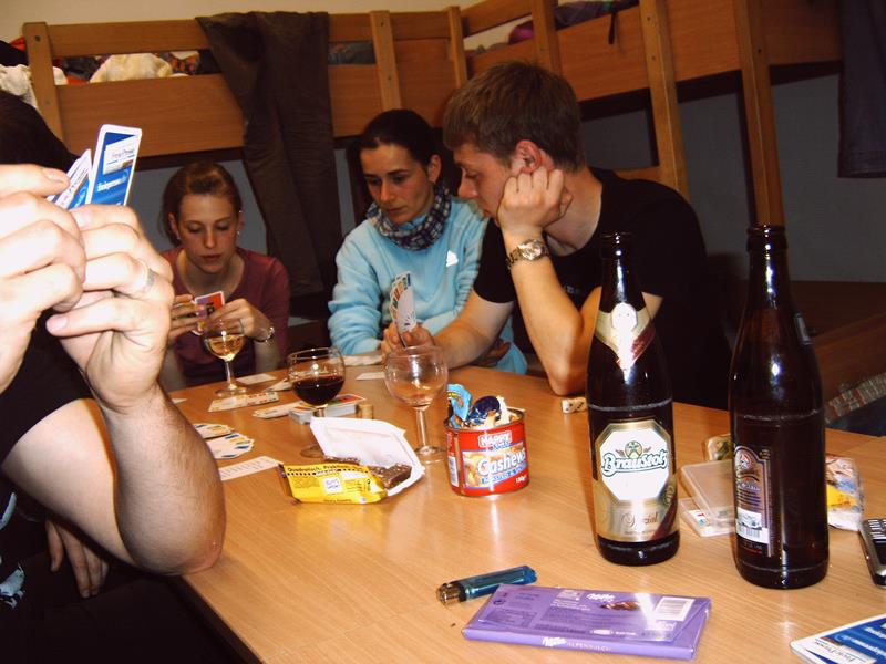 Nachdem das Wetter im letzten Jahr nicht so besonders war, haben wir diesmal Glück – dachten wir uns. Leider dachte Petrus nicht so wie wir. So trafen wir uns am Donnerstag, den 25.05.06 9.00 Uhr an der Bernsdorfer Halle und starteten bereits im Regen. In der JH angekommen, wurde nach dem Zimmerbeziehen erstmal das Mittag gegrillt. Dazu gab es leckeren Nudelsalat und zum Nachtisch Quarkkuchen mit Kirschen. Danach machten wir uns auf in die Turnhalle nach Oelsnitz, um mit Brenn – und Volleyball den Nachmittag zu gestalten. Als wir gegen 17.00 Uhr wieder in der Herberge angekommen waren, hatte sich die Wetterlage nicht wesentlich verbessert und so lauschten wir bis zum Abendbrot (Kartoffelbrei mit Beefsteak und Gemüse) den Klängen des Schallmeienorchesters, um anschließend noch eine Runde Tischtennis zu spielen. Den restlichen Abend ließen wir im Zimmer 9 mit „Phase 10“ und Skat ausklingen.