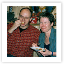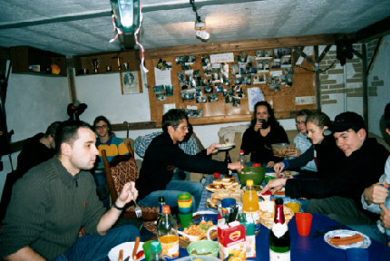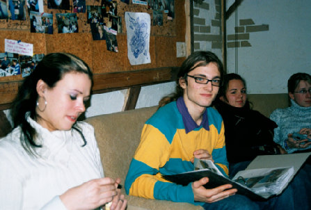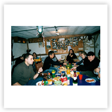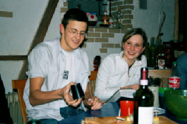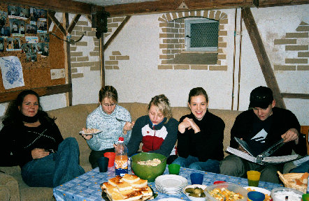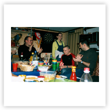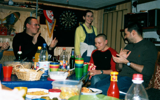 In einer gemütlichen Runde saßen wir am 15.01.05 im Keller in der Alten Harth 74 zusammen. Mit 23 Personen war das Fassungsvermögen dieses kleinen Raumes eigentlich deutlich gesprengt. Auf jeden Fall gab es genug zu Essen: zwei Kuchen, einen Nudelsalat, einen Kartoffelsalat, zwei Obstsalat und einen Käsesalat. (Vielen Dank an alle, die fleißig in der Küche standen!) So vergingen die 6 Stunden zwischen 19.00 und 01.00 Uhr. Wir quatschten, aßen, lachten („Panzer, ich begrüße sie!“) und blätterten in alten Alben.
