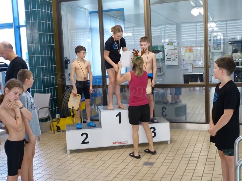 Den Abschluss unseres Sportjahres bildete heute am 07.12.2024 wieder mal das Lichtelschwimmen, welches einerseits die Auswertung und Siegerehrung unserer Bestenermittlung von vor zwei Wochen war und andererseits die Weihnachtsfeier mit Staffelwettbewerben im Wasser. Zur Siegerehrung erhielten alle vom Anfänger bis zum Jahrgang 2009 Urkunden, Medaillen und Pokale für die geschwommenen Leistungen. Zusätzlich gab es Bücher und Trinkflaschen als Preise.