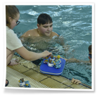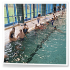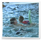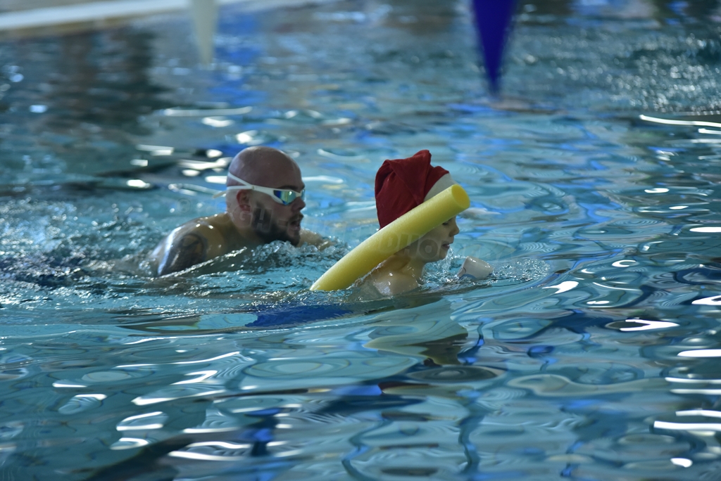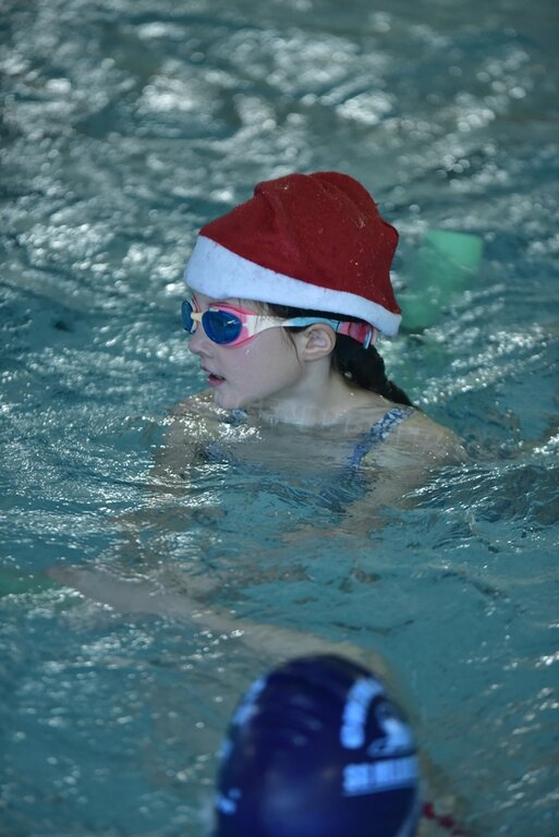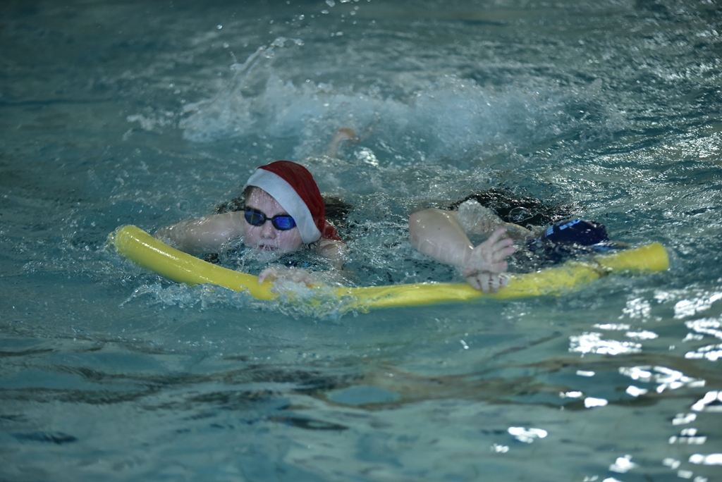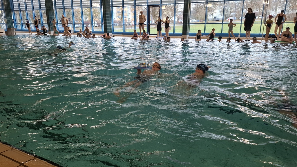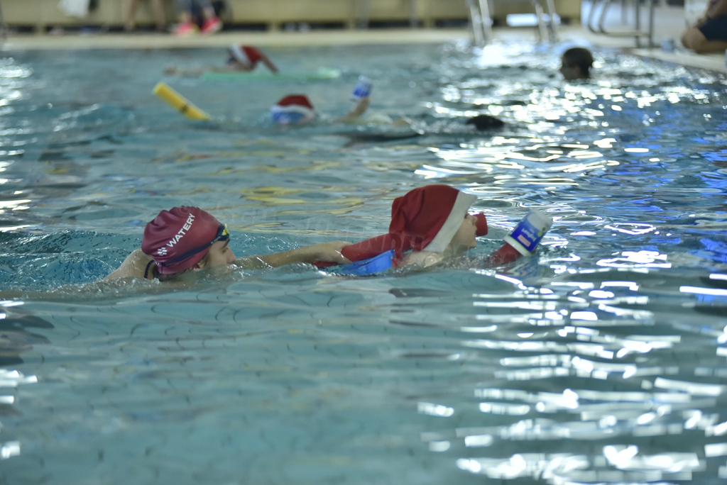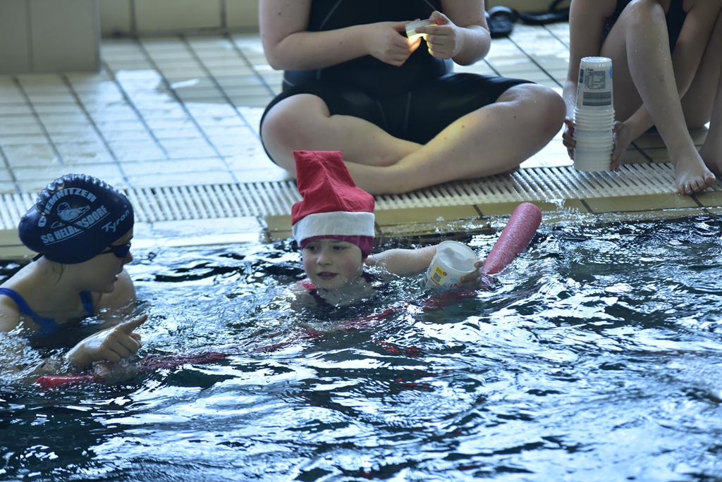 Anschließend wurden die Kinder und Jugendlichen in 5 Staffeln eingeteilt und es ging endlich ins Wasser. Bei unseren weihnachtlichen Staffeln stand vor allem der Spaß im Vordergrund. Es wurde der Weihnachtsbraten transportiert, Adventskalender leer gegessen, Pyramiden gebaut, Lichter sanft durchs Wasser geschoben und allerhand mehr.