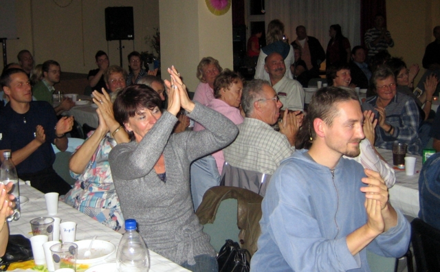 Am 04.10.2007 fand der Polterabend von Ellen und Patrick statt. Sie empfingen 130 Gäste. Wie sie berichteten, haben sie (wie das eben auf solchen Veranstaltungen wo man als Hauptperson auftritt ist) mit vielen Gästen außer "Guten Tag" und "Vielen Dank" nicht viel Konversation betreiben können, da sie ausreichend mit Spielen und perfekt inszenierten Geschenkübergaben beschäftigt und von deren Masse und auch aufgrund der vielen Anwesenden umfassendst gefordert waren. Neben den Familien, Verwandten und Bekannten zählten die Mitglieder der Jugendabteilung, der Schwimmabteilung allgemein (incl. Vorstand) und überaschenderweise auch Schwimmkinder nebst Eltern zu den Gästen. Vom Polterabend gibt es leider nicht so viele Bilder - wer noch welche hat kann sich gern melden. Es war auf jeden Fall ein unvergesslicher Abend für die Beiden. Hier dazu einige der wenigen Bilder !