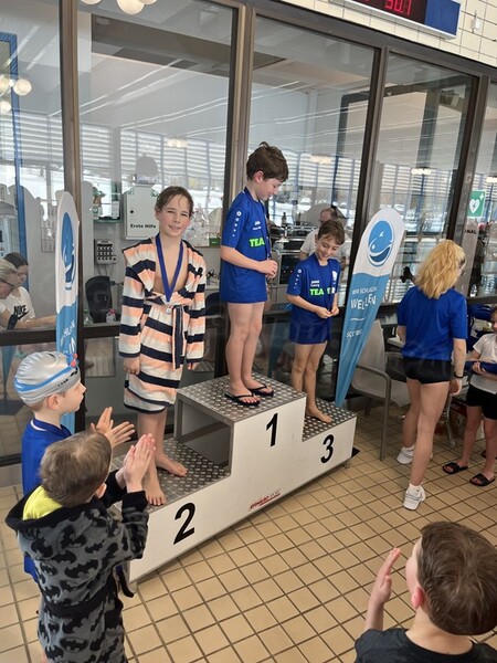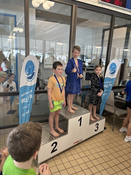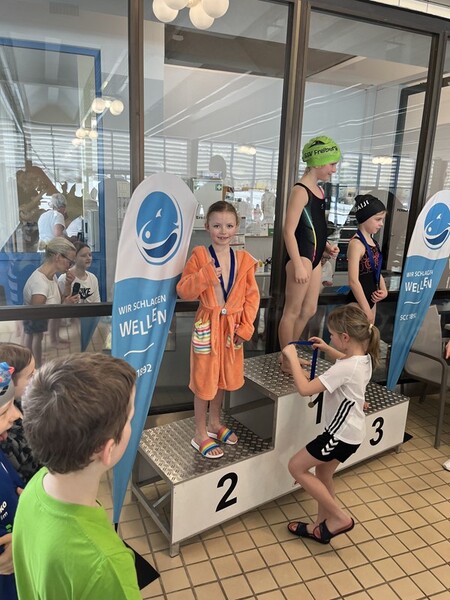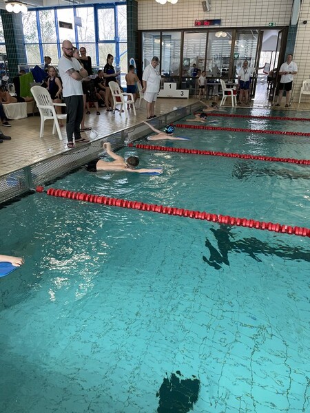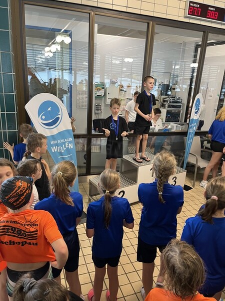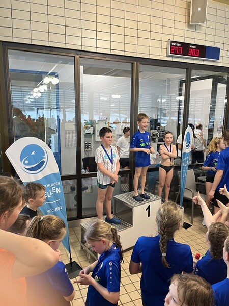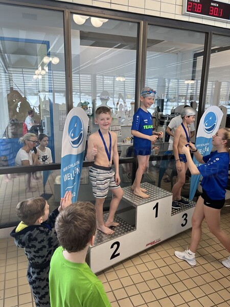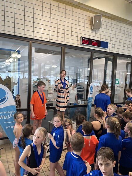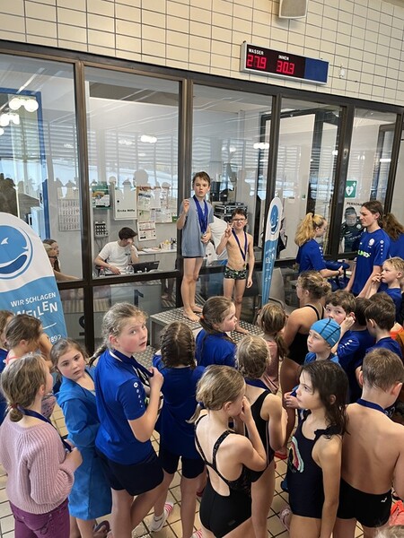 Pünktlich um 10:30 Uhr starteten wir mit dem Einschwimmen und 11 Uhr begann dann der Wettkampf. Es wurden 25m - Bein und 50m Gesamt Strecken geschwommen. Die Teilnehmerzahl war insgesamt hoch und so wussten wir, dass die Konkurrenz stark sein würde. Jeder kämpfte daher auf seiner Strecke um eine gute Leistung. Zunächst waren wir alle froh und stolz das niemand disqualifiziert wurde. Die Kinder feuerten sich gegenseitig zu guten Leistungen an und dann kam die Siegerehrung. Diese wurde zwischen den Läufen durchgeführt. Wir freuten uns riesig als auch aus unserem Verein Schwimmer und Schwimmerinnen aufgerufen wurden und sie aufs Siegerpodest steigen konnten.