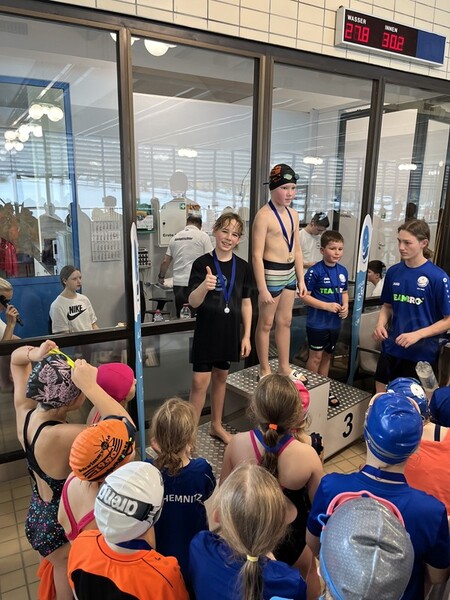 Am 11.03.2023 trafen wir uns zum Schwimmfest des Sportbundes Chemnitz um 10 Uhr mit 11 Kindern, 2 Mannschaftsleitern und 4 Kampfrichtern vor der Schwimmhalle am Südring.