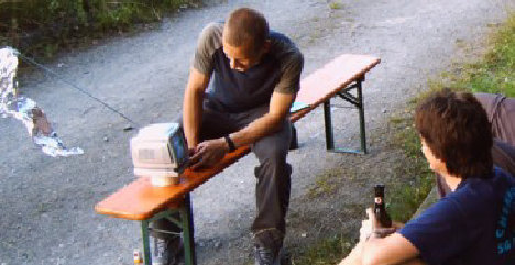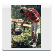 Gegen 18.00 Uhr wurde der Grill angeschmissen und es gab leckere Roster, Steaks und Salate. Die Männer waren schwer damit beschäftigt auf unsererm schwarz-weißen Minifernseher das Fußballviertelfinale Schweden – Holland zu finden. Als die Temperaturen langsam nachließen, zündeten wir noch unser Lagerfeuer an. Trotz Bangen und Hoffen verloren die Schweden im Elfmeterschießen. Nick, der uns wieder begleitete, schlief zwar erst 23.00 Uhr ein, dafür war aber bis 05.15 Uhr Ruhe (und nicht wie angekündigt aller 2h Theater). Auch sonst war er unser kleiner Strahlemann. Gegen 02.00 Uhr war das Feuer erloschen und alle im Zelt verschwunden.