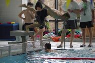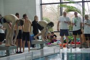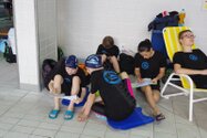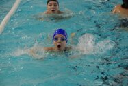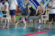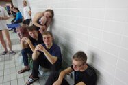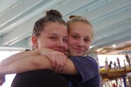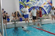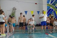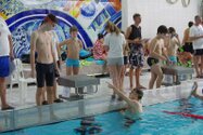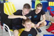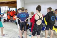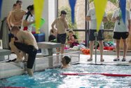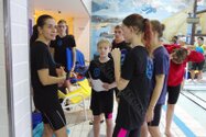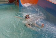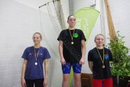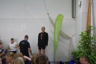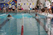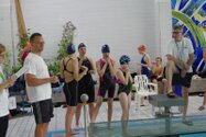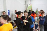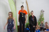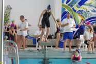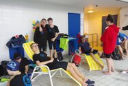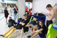 Zum Start heute früh (06.45 Uhr !) waren alle bis auf einen pünktlich da. Als wir T.F. noch fix aus dem Bett geschmissen und abgeholt hatten, ging es endlich los. ;-) In Annaberg erwartete uns familiäre Atmosphäre und ein gut organisierter Wettkampf. Gleich bei 50m Delphin stürzte T.F. dann noch beim Startpfiff nach hinten vom Startblock. Zum Glück war nix passiert. Insgesamt kämpften sich alle super durch das Wasser. Nicht jede Wende klappte, nicht jede Beintechnik gefiel den Kampfrichtern, aber wir hatten trotzdem jede Menge Spaß und am Ende durften alle auch mindestens eine Medaille mit nach Hause nehmen. Besonders schön waren unsere 2 Staffeln und das Rutschen zum Schluss. Wir waren heute eine dufte Truppe: 2 sympathische Autofahrer, die liebe Nicole als KaRi und 8 tolle Schwimmer/innen. Es war schön, Eure Mannschaftsleiterin sein zu dürfen. 15 Uhr hatten wir den Parkplatz am ACC wieder erreicht. Bis morgen zum Lichtelschwimmen. Ellen: [Danke an Rico und Nadine fürs Fahren und für´s Knipsen, Danke an Nicole fürs Kampfrichten und Danke an Ellen für Manschaftsleitung und die Fotos.]
