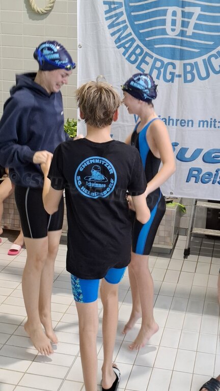 Wie immer im Advent waren wir zum Sprintertag beim SV 07 Annaberg-Buchholz in der Atlantis Schwimmhalle. Etwas verschlafen aber gut gelaunt trafen wir uns dazu 06.45 Uhr am ACC, um in Fahrgemeinschaften anzureisen. 07.30 Uhr erreichten wir die Halle, von 08.00-08.20 Uhr standen uns 2 Bahnen zum Einschwimmen zur Verfügung. Geschwommen wurden bei den Anfängern der JG 2017 und 2018 alle 25m Strecken und ab JG 2016 alle 50 m Strecken und die 100m Lagen. Bei Manchen waren die Arme und Beine eine Woche nach der Bestenermittlung noch etwas träge, während andere die Bestzeiten noch einmal verbessern konnten. Mit nur wenigen Disqualifikationen und vielen erkämpften Medaillen war unser Mannschaftsergebnis auf jeden Fall super. Und zwischen den Starts hatten wir sehr viel Spaß im kleinen Nichtschwimmerbecken.