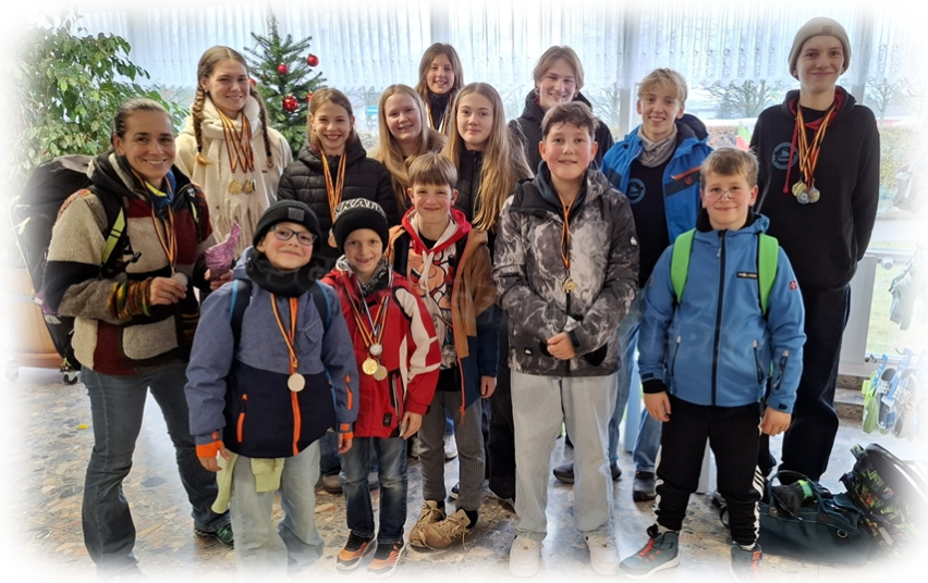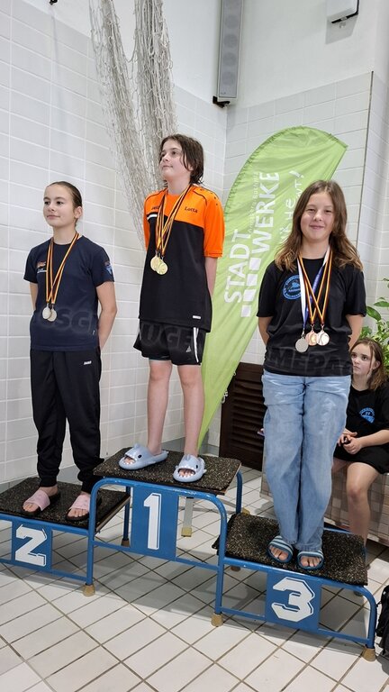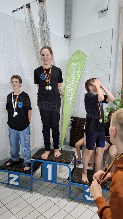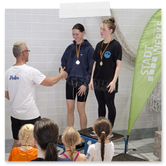 13.30 Uhr waren alle Wettkämpfe geschwommen und Medaillen verteilt und wir konnten uns wieder auf den Heimweg machen. Danke an unsere beiden Kampfrichter Sebastian und Luca, an den Fotografen für die zahlreichen Bilder und an die Fahrer!!!