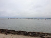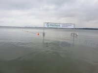 Ein besonderes Erlebnis für Campingfreunde ist das Zelten direkt am Strand. Am Freitag bauten wir noch bei Sonnenschein unsere Zelte auf, doch schon in der Nacht trommelten Regentropfen „romantisch“ auf das Zeltdach und auch für Samstag war keine Besserung in Sicht. Die Wassertemperatur der Ostsee sank in den letzten Tagen drastisch ab und es wurden am Wettkampfmorgen offiziell gerade noch 16,1 Grad gemessen. Zusätzlich trieben böige Regenschauer über die Küste, so dass durch den Veranstalter eine Verlegung der Strecke beschlossen wurde. Statt einer Sundquerung musste nun die Strecke von 2400 Meter parallel zum Strand geschwommen werden.