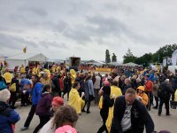 12 Uhr Mittag ging es mit Bussen zum Start nach Parow, insgesamt machten sich 997 Starter bereit, sich ins wirklich kalte Wasser zu wagen. Pünktlich 13 Uhr stürzten wir uns hinein. Hella war ambitioniert in der ersten Startreihe dabei, galt es doch den Sieg vom Vorjahr zu verteidigen. Einige Sportler verließen jedoch das Wasser direkt am Start wieder und verzichteten diesmal. Das Ziel in Stralsund erreichten 860 Schwimmer, 130 Sportler mussten unterwegs von den zahlreichen Begleitbooten der DLRG aufgenommen werden; eine Rekordzahl und den widrigen Bedingungen geschuldet. Im Ziel standen Dusch- und Wärmezelte sowie Massageplätze zum Aufwärmen und Erholen für alle Starter bereit.